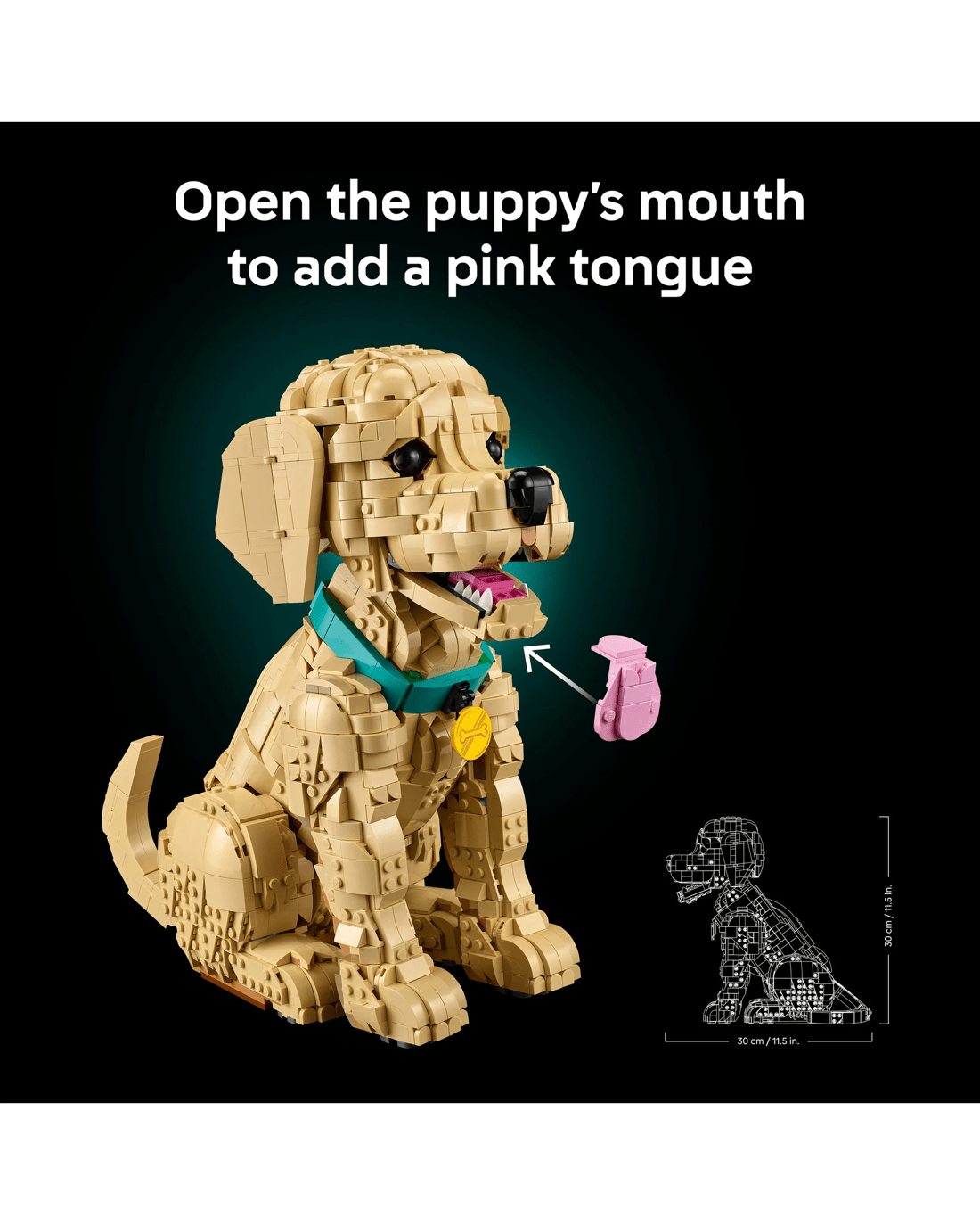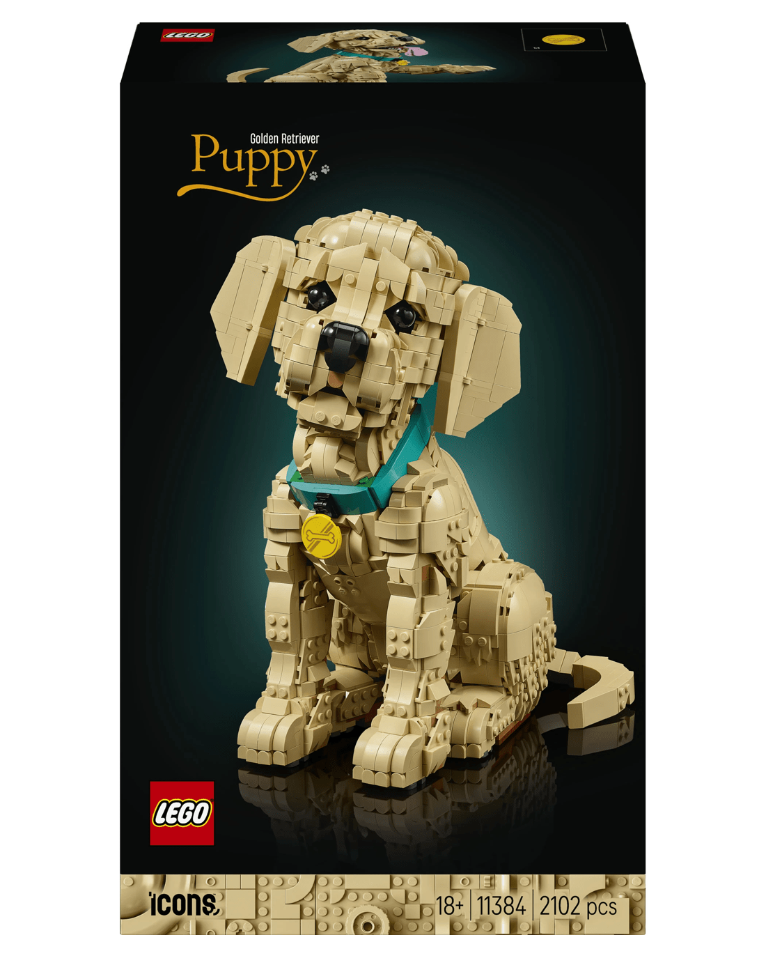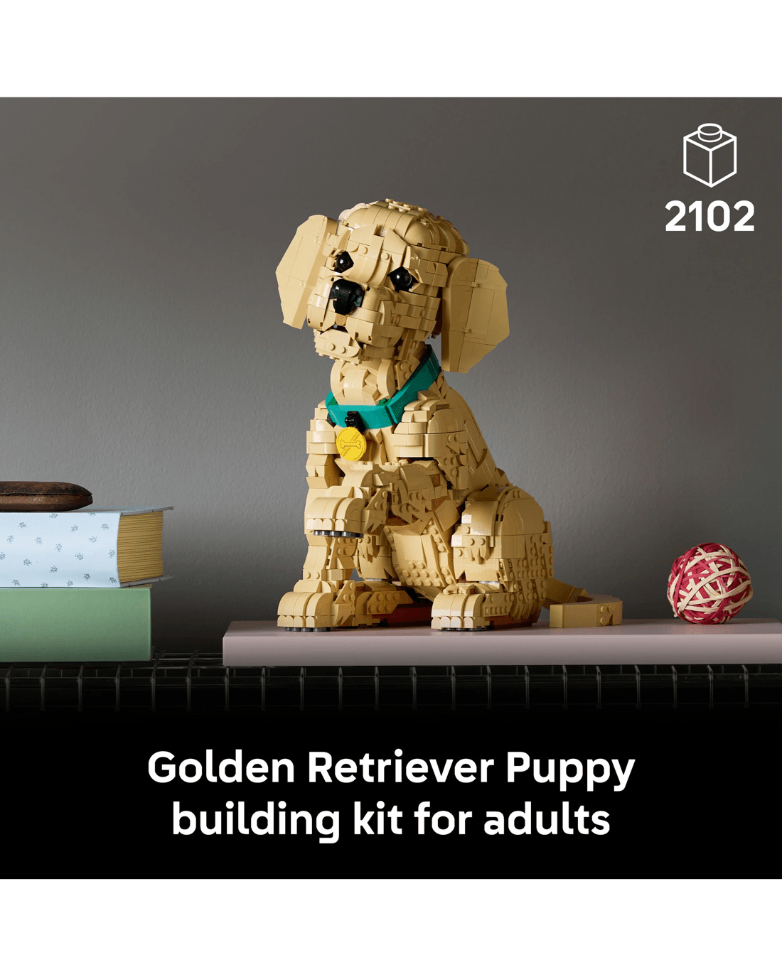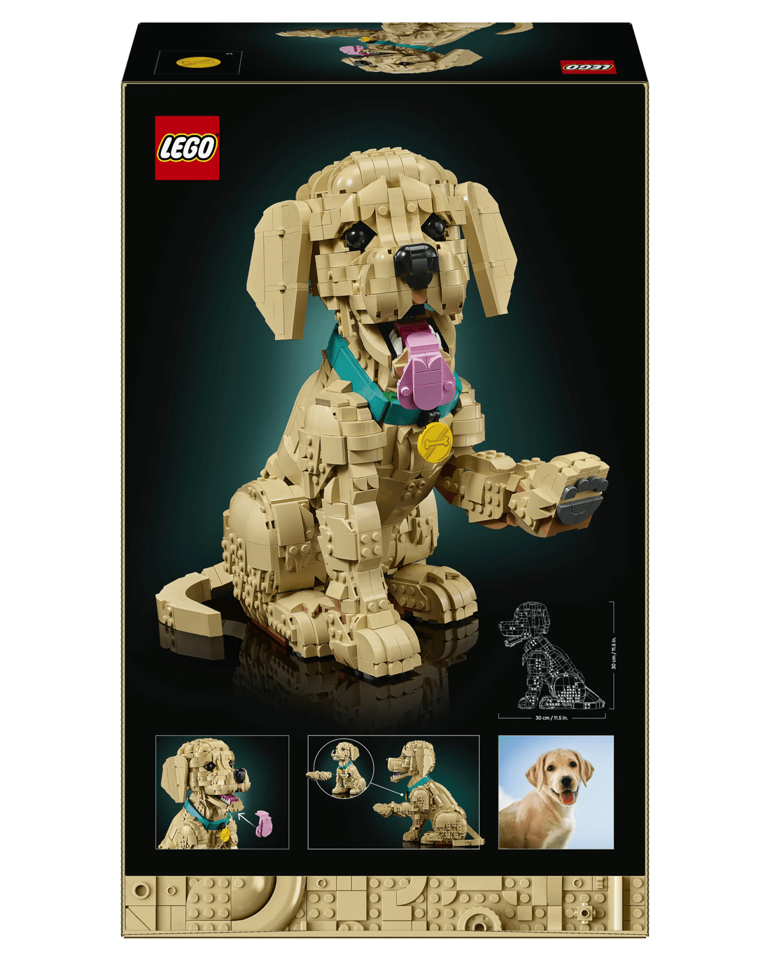 - Dimensions - When built, the 2,102-piece LEGO Icons Golden Retriever Puppy model stands over 30cm tall