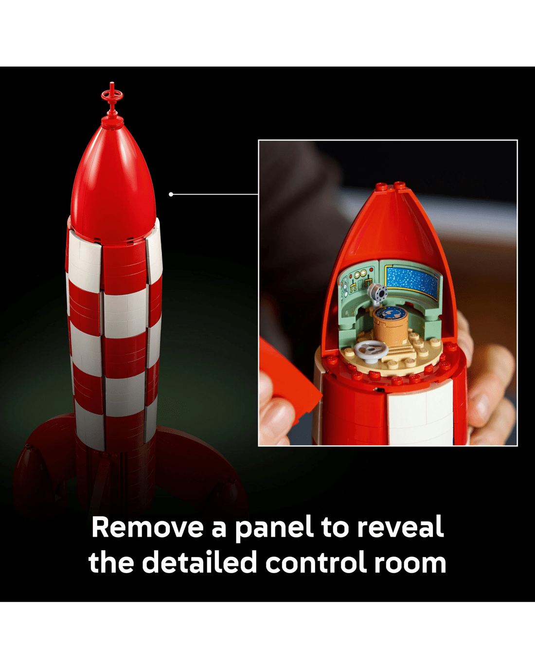 - Rocket Model Building Kit - Launch a personal mission to recreate the iconic Tintin Moon Rocket (LEGO Ideas) from the classic Destination Moon and Explorers on the Moon comics