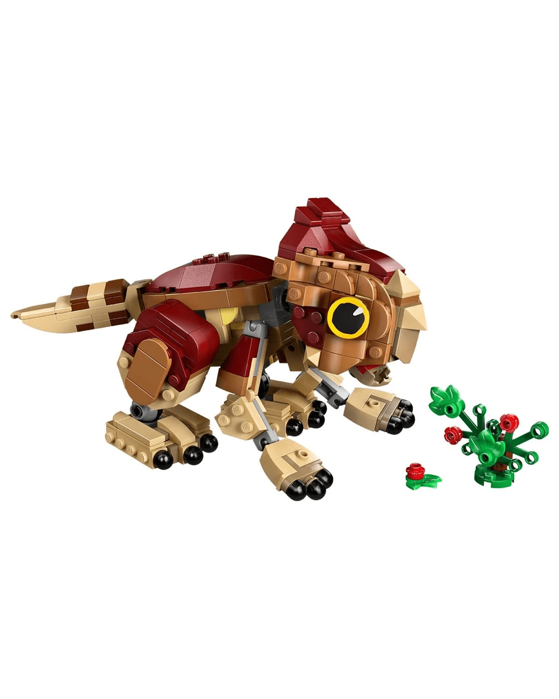 Adventures await kids and fans who want to start or add to their dinosaur collection with this fun Baby Dinosaur Dolores: Aquilops LEGO Jurassic World toy set. This play-and-display building kit features a brick-built baby Aquilops dinosaur figure for kids and a buildable plant with flowers. The Baby Dolores model has a movable head, arms and legs that encourage a range of poses, plus a moving tail and an opening jaw to show her delight when she eats her plant meal. Once playtime is over for the day, this cute dinosaur model can be placed on a shelf or desk to show it off.