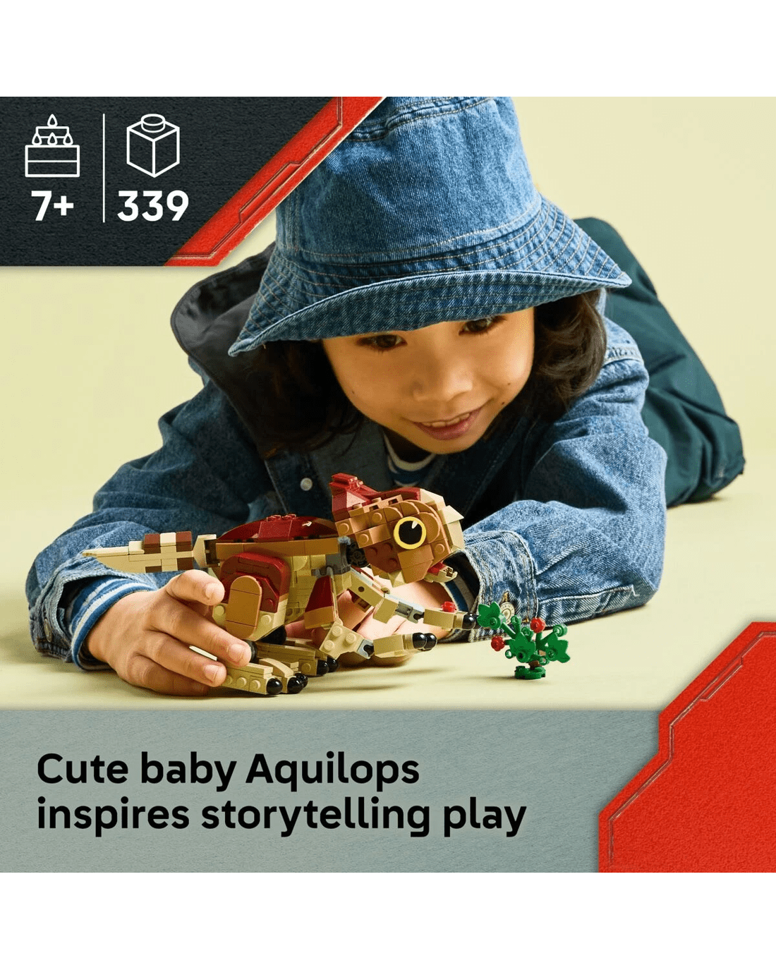 - Baby dinosaur toy set - Features a model of a baby Aquilops inspired by the Jurassic World Rebirth film, plus a buildable plant with flowers to encourage role play and storytelling fun