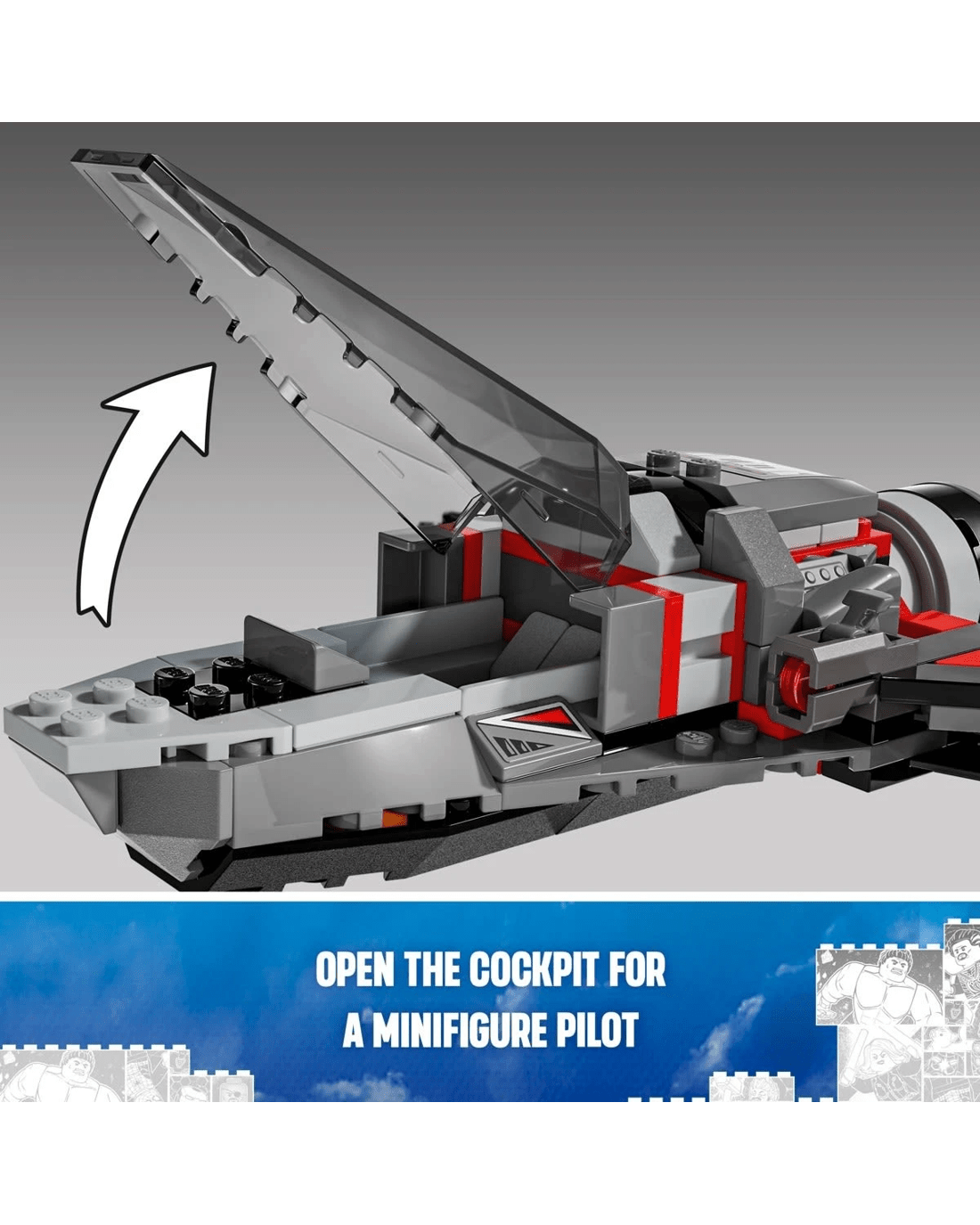 Action film fans will love the authentic details and popular minifigures included in LEGO Marvel Captain America vs. Red Hulk Battle. This Super Hero kids' construction set puts high-flying Captain America adventures in the hands of boys and girls. This fighter jet buildable toy includes an impressive cast of minifigures: Captain America and Falcon (both with opening wings), Red Hulk and Ruth Bat-Seraph. Featuring a large opening cockpit with room inside for a minifigure pilot, the jet is easy for kids to hold and fly around while they launch attacks using the two attached stud shooters. A top section of the jet can be removed to reveal a hidden storage compartment in the rear with room for spare studs or mystery metals. This buildable toy vehicle is ideal for independent role play. For added digital fun, kids can zoom into the model, rotate it in 3D and track their building progress using the fun, intuitive LEGO Builder app.
