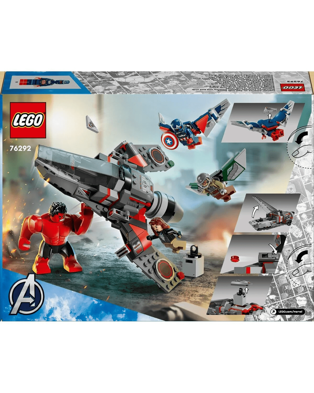 - LEGO Marvel Avengers gift for kids - Kids who love jet planes, Captain America, Falcon and Red Hulk can explore endless creative play possibilities with this buildable Super Hero toy