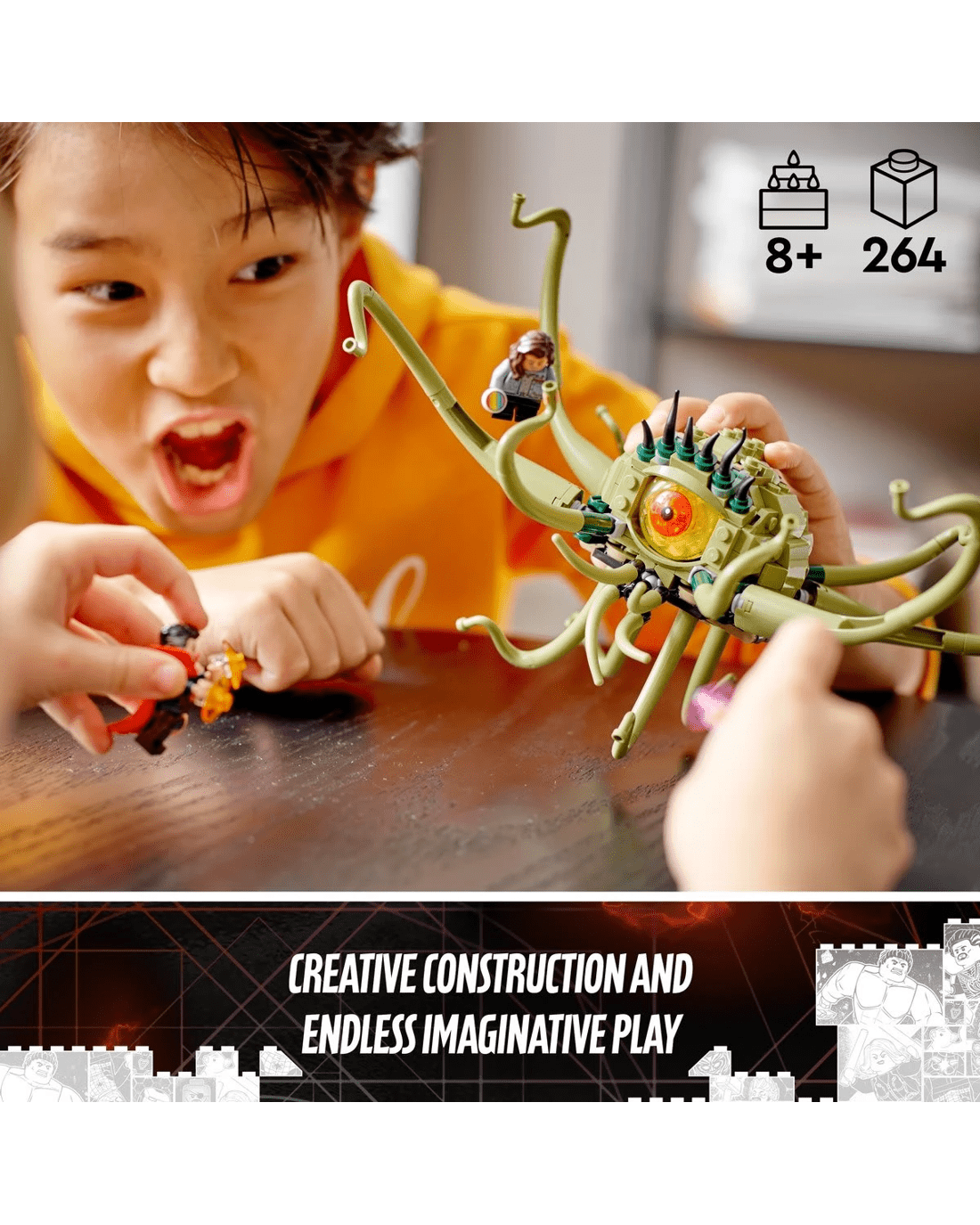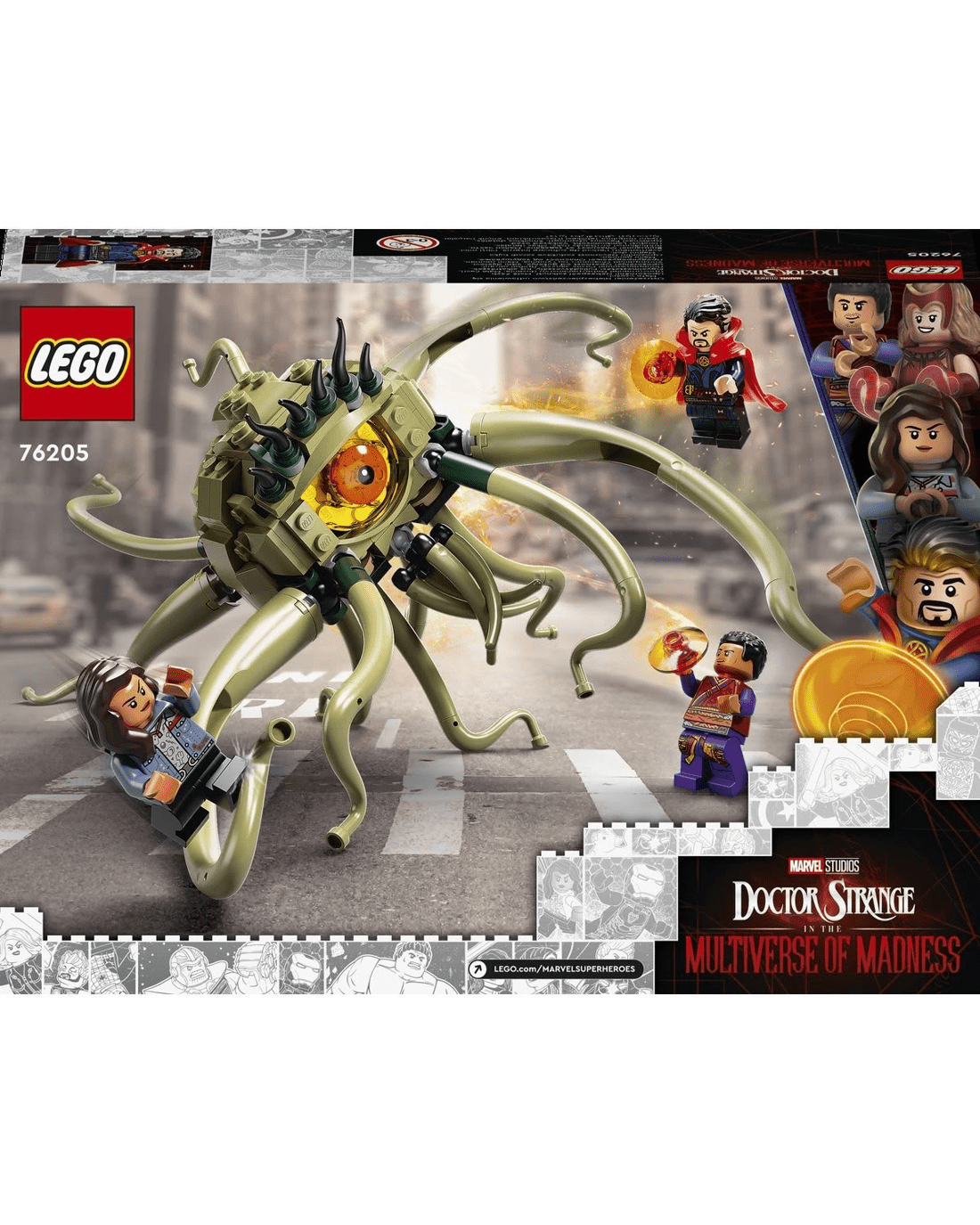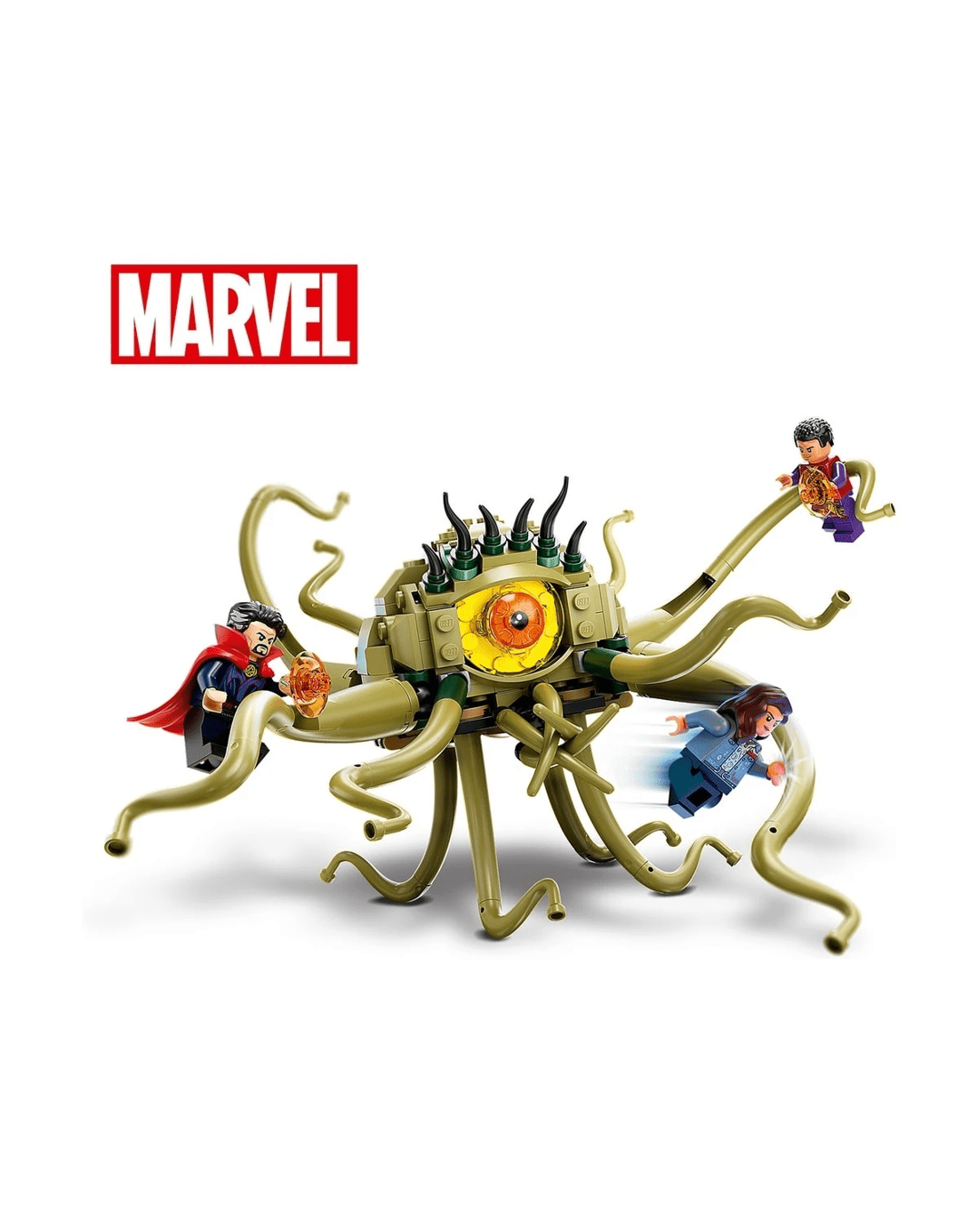 Anything can happen when a cast of Marvel Super Heroes encounter a massive, angry, one-eyed creature with long, green tentacles. This versatile set features 3 popular LEGO Marvel minifigures: Doctor Strange with a removable cape, Wong and America Chavez. The one-eyed, green monster has long, jointed limbs that allow kids to position and pose the creature for maximum effect.