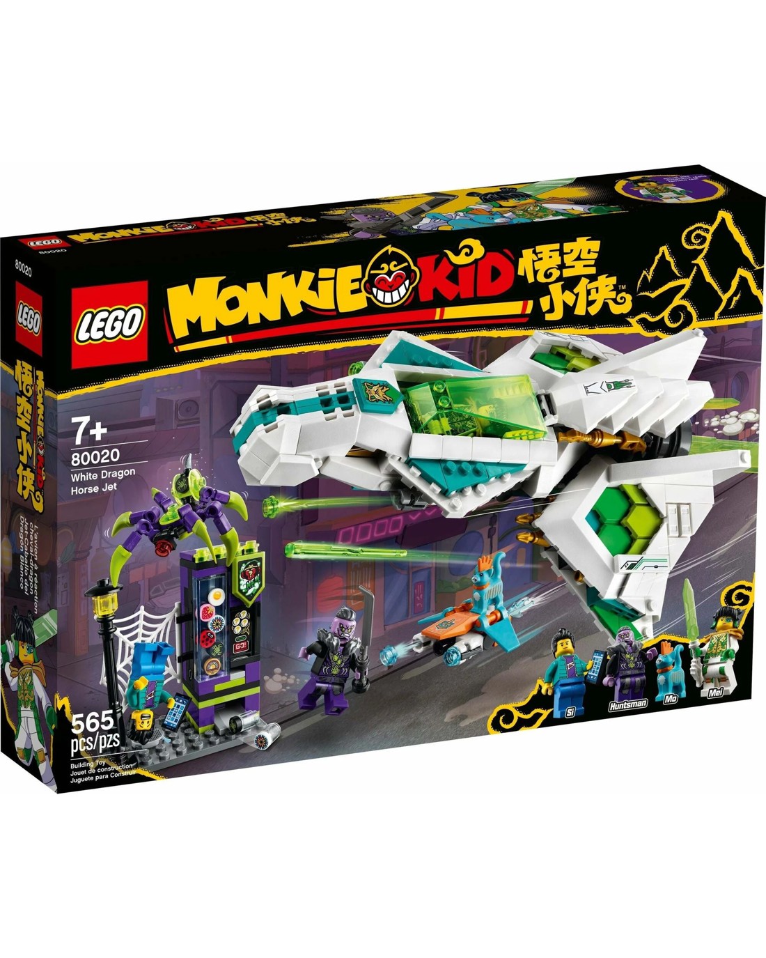 Children will love role-playing as the heroic Mei flying her White Dragon Horse Jet (80020) to save the city from the Spider Queen's Huntsman and a 'poisonous' robotic spider.