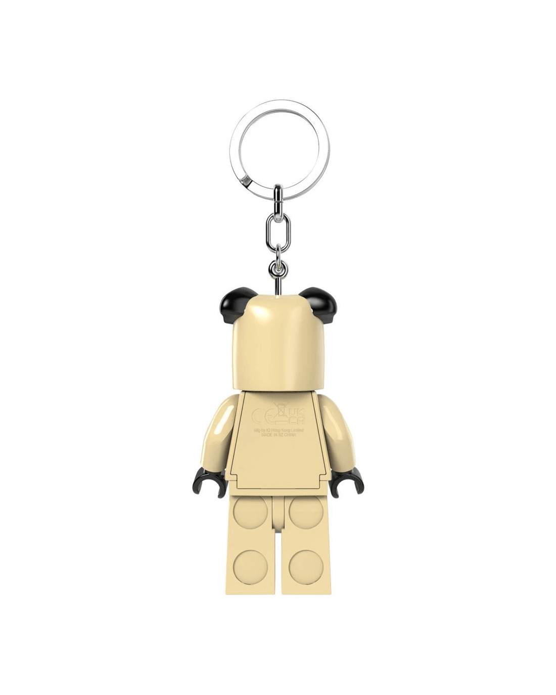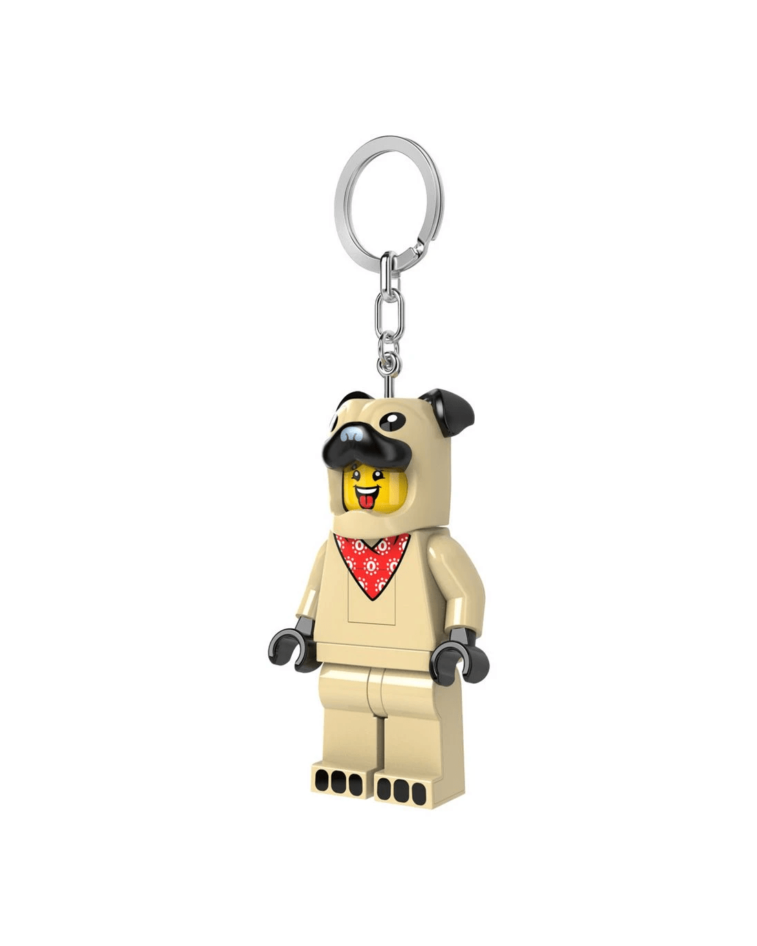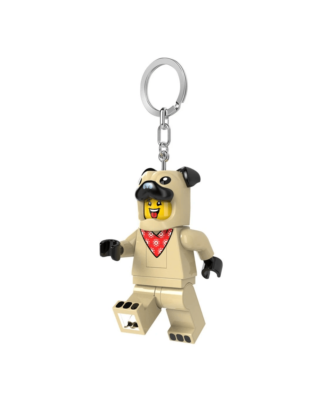 - The keyring features a fun minifigure with moveable arms and legs.
