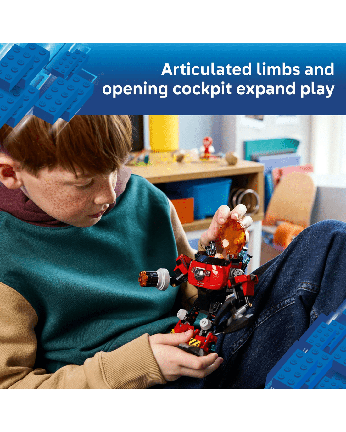 - Hands-on interactive fun - Set has a posable mech with a 6-stud rotating launcher, giant spinning claw and articulated limbs to inspire play and it’s easy for gaming toy fans to take on playdates