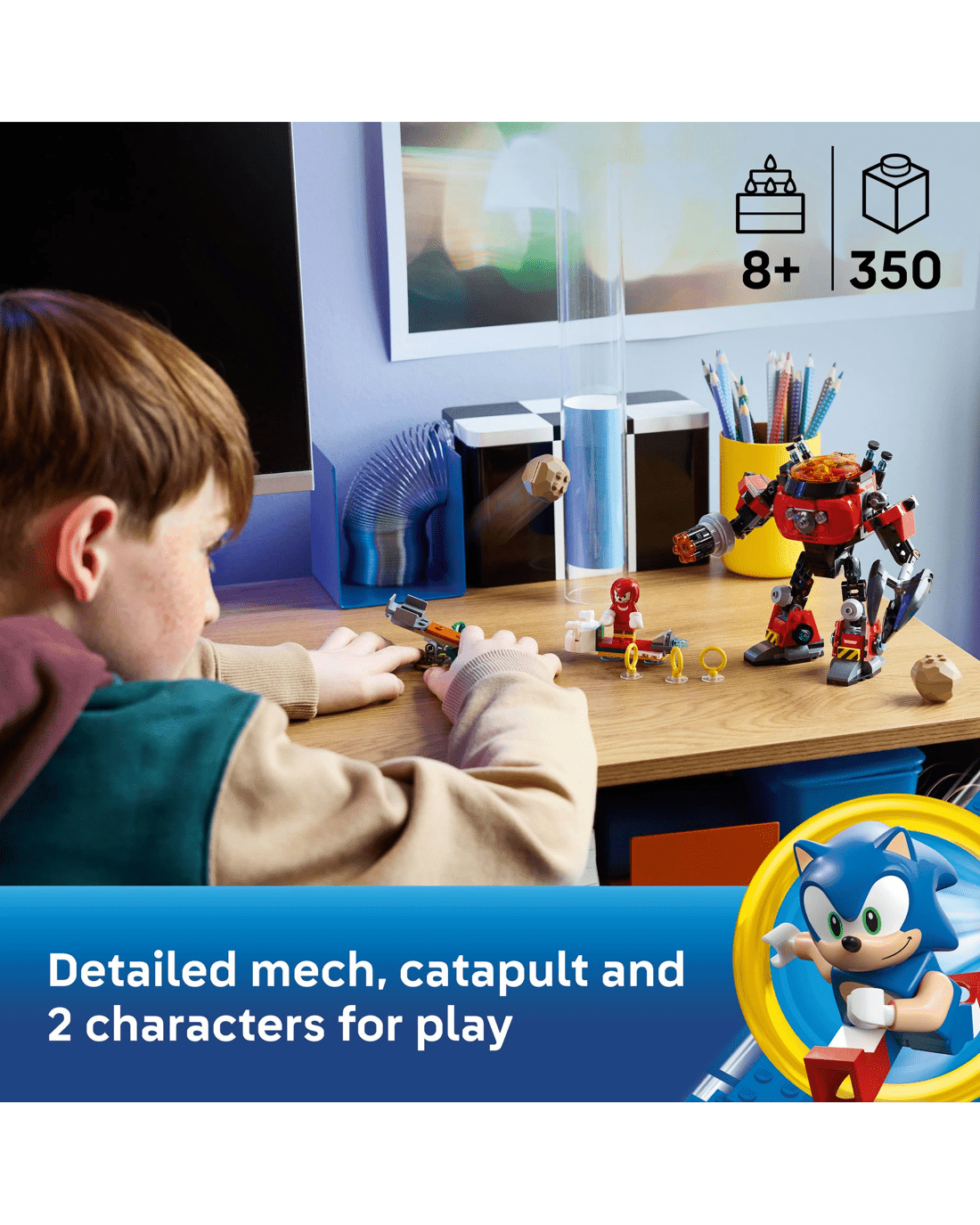 - LEGO mech adventures - This fighting toy also includes a catapult with terrain that launches boulders with a lever push, letting Sonic fans play out endless action with Knuckles and Dr. Eggman
