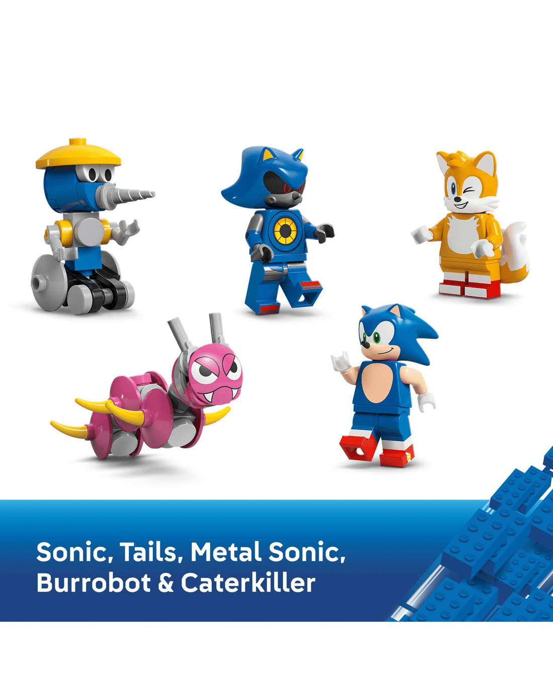 - The action’s inside - Features Sonic, Tails and Metal Sonic LEGO minifigures, Burrobot and Caterkiller figures and a truck with a cabin, storage area and a ramp for an ATV toy