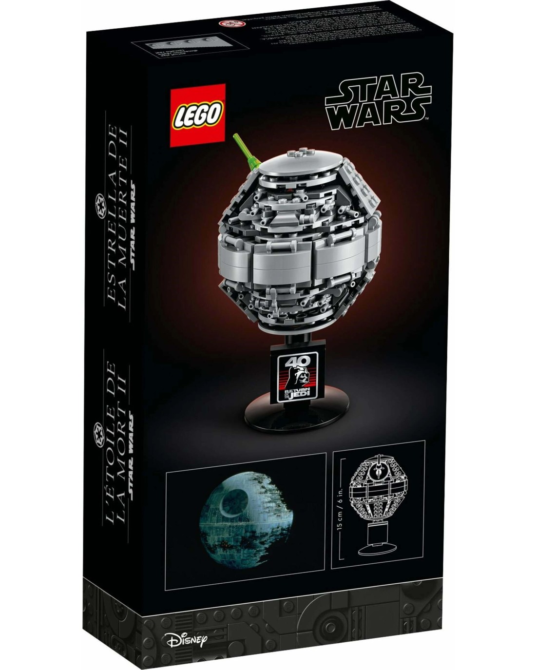Bring back memories of dramatic Star Wars Return of the Jedi moments with this miniature Death Star IITM build-and-display model (40591). It features a miniature recreation of the throne room inside to delight fans, a display stand that allows you to rotate the Death Star and view it from all angles, plus a Star Wars Return of the Jedi 40th anniversary plaque. This gift-with-purchase makes a cool addition to any LEGO Star Wars(TM) fan's collection.