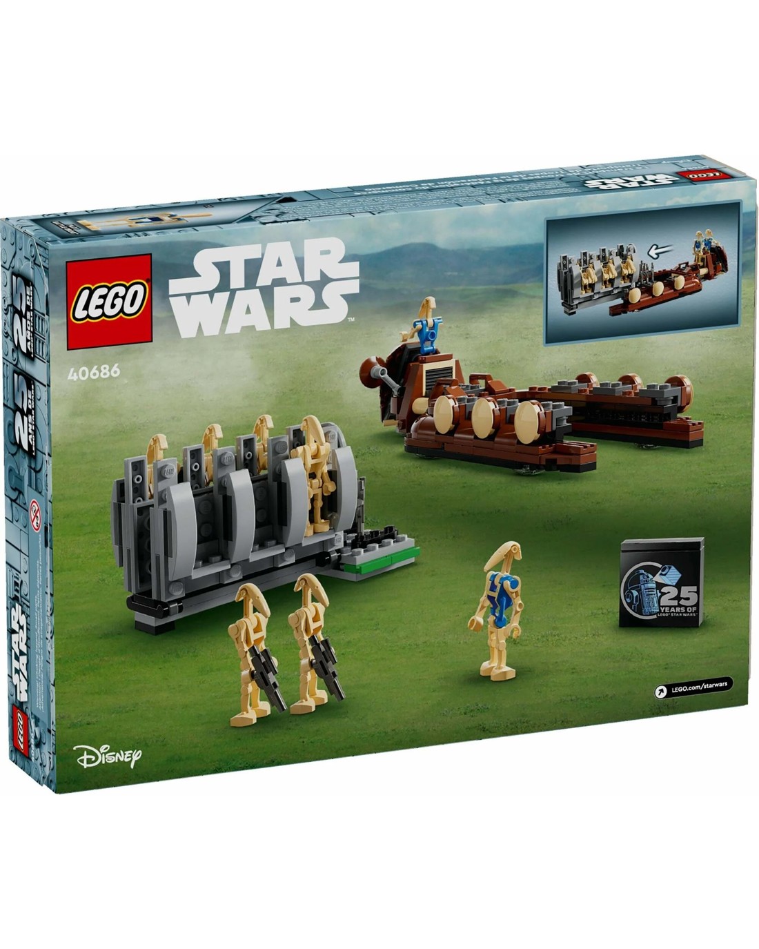 The set is designed to be easily handled and used in play. The Trade Federation Troop Carrier has rolling wheels for easy movement, and the Battle Droid can be placed inside, simulating the transport of droids during the invasion.