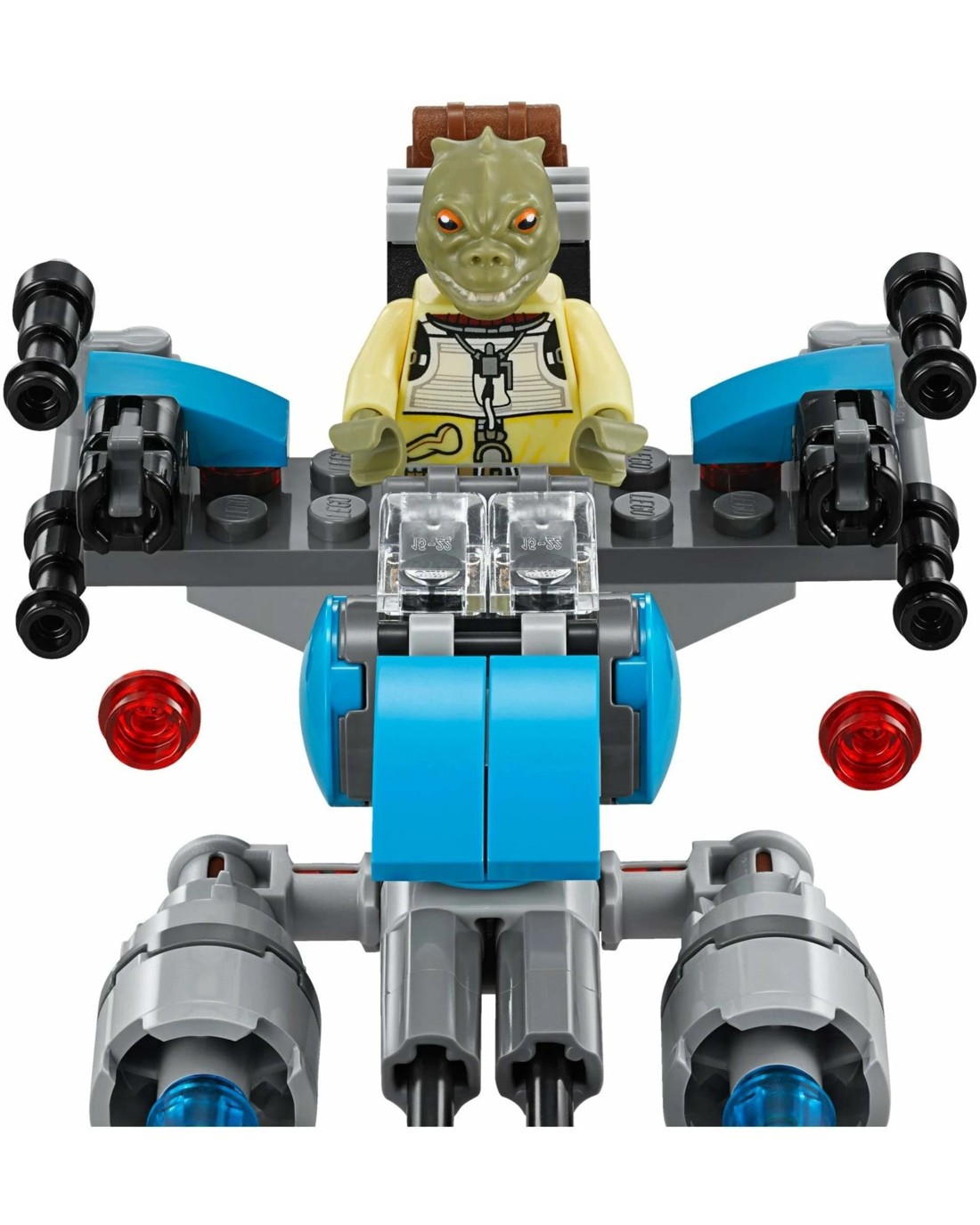 Features space to sit a minifigure, 2 stud shooters, blue elements, and a backpack.