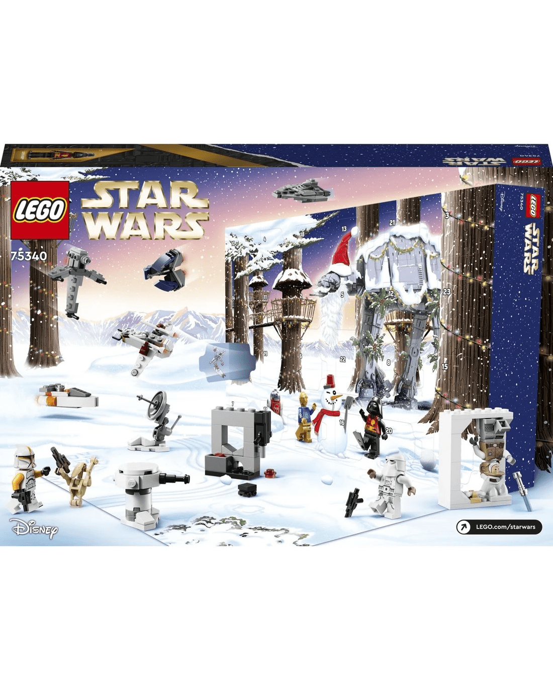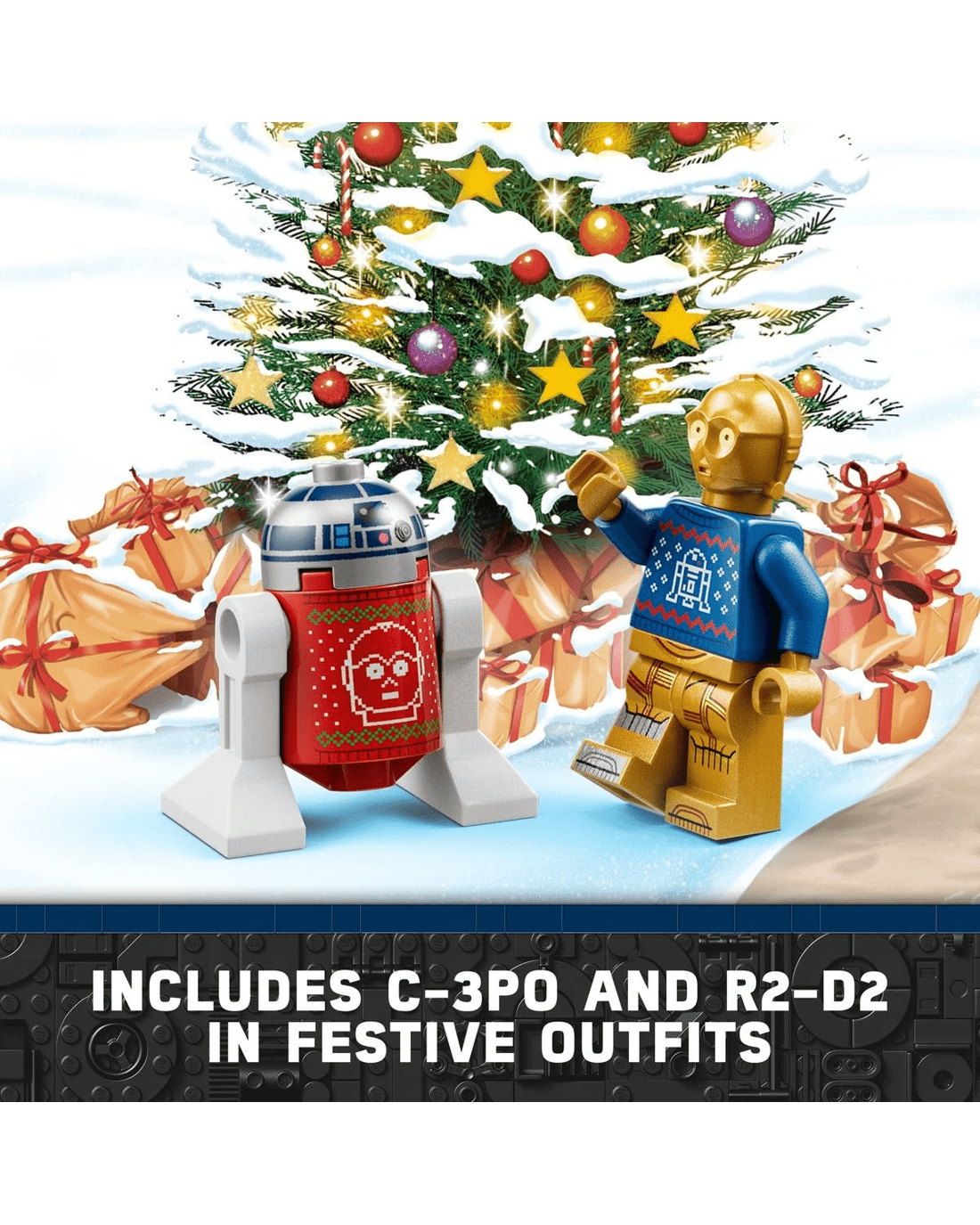 Fans will discover a surprise brick-built toy behind every door of the 2022 LEGO Star Wars Advent Calendar in the run-up to Christmas. It features 8 LEGO Star Wars characters, including C-3PO and R2-D2 in holiday sweaters decorated with each other's portraits, a Gonk Droid dressed as Santa and Darth Vader in a summer outfit from LEGO Star Wars Summer Vacation on Disney+.
