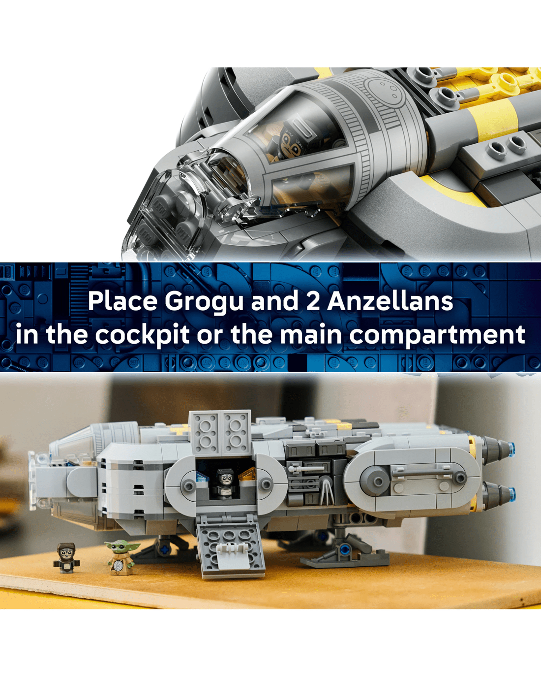 • 3 LEGO Star Wars Figures - Place the Grogu LEGO figure and 2 Anzellans in the cockpit or the main compartment of the starship