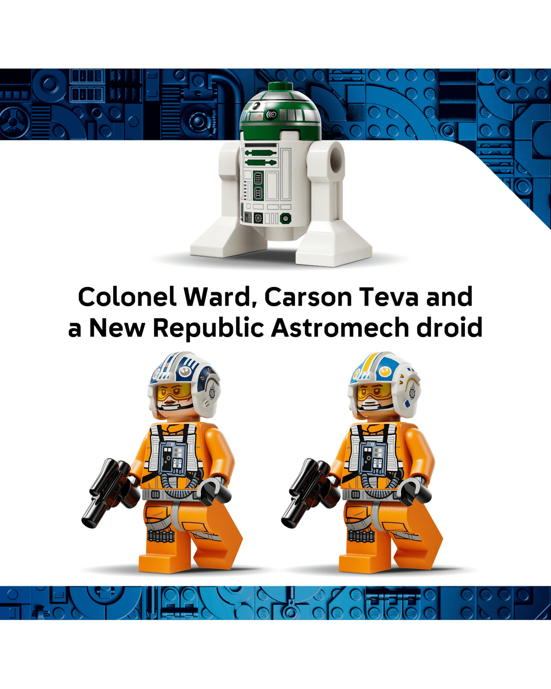 - 3 LEGO Star Wars Characters - Help either the Colonel Ward or Carson Teva LEGO minifigure up the ladder to the cockpit, and place the New Republic Astromech LEGO droid figure behind the cockpit