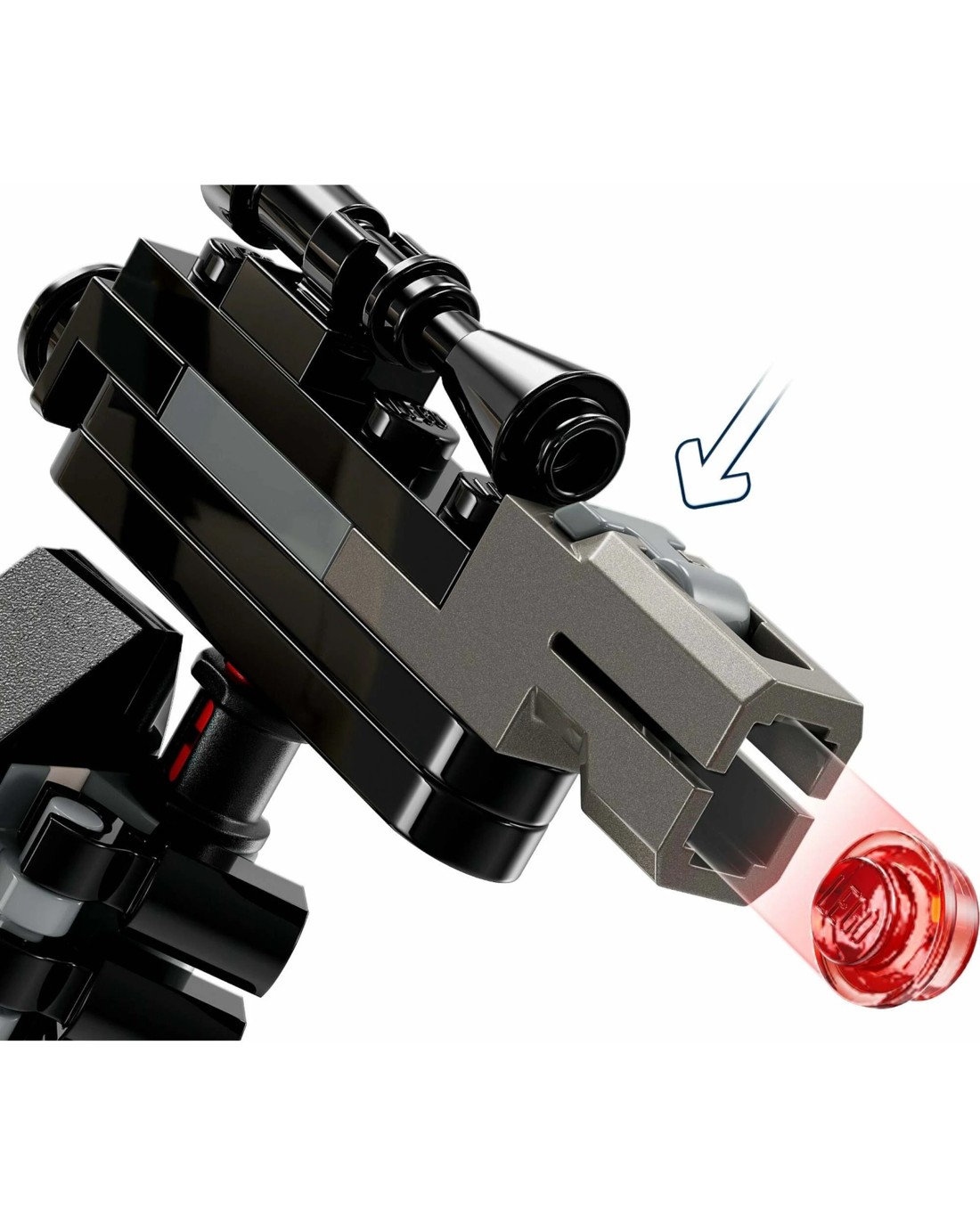 Posable mech suit: This buildable toy has posable hands, arms, legs and feet, an opening minifigure cockpit, a large stud-shooting blaster and a clip for the Stormtrooper LEGO(R) minifigure's blaster