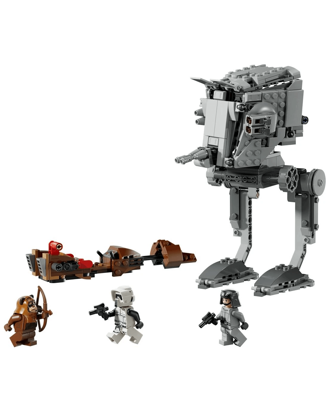 Play out a thrilling AT-ST Attack on Endor with this LEGO Star Wars toy building set. Place the AT-ST Driver in the AT-ST walker’s cockpit, turn the head of this iconic Star Wars vehicle and fire its dual stud shooter and flick shooter at the hijacked speeder bike.