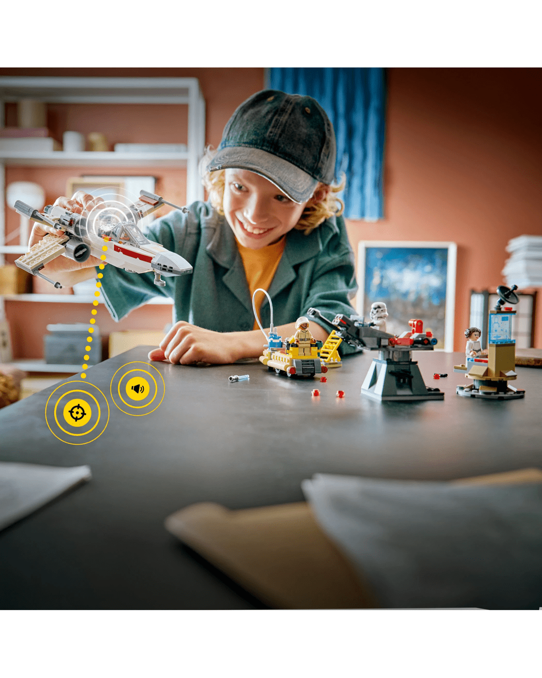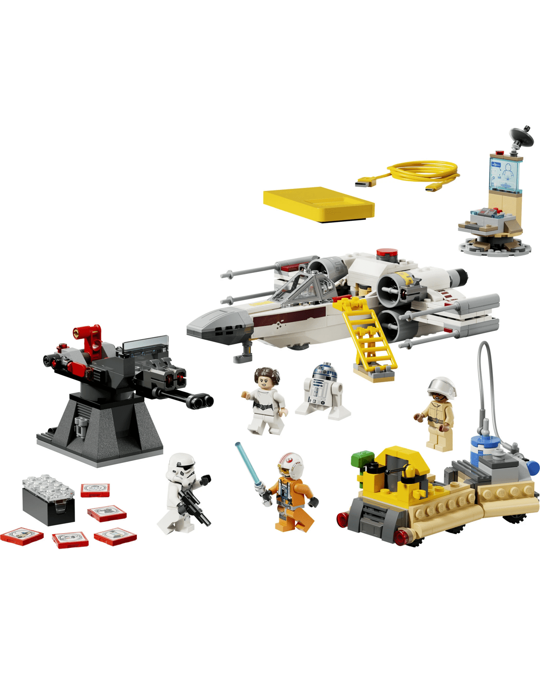 Hear the engine’s roar as the X-wing fighter is flown. Activate laser-shooting sounds with the X-wing and Imperial turret. Monitor communications in the command centre. Bring SMART Luke Skywalker and SMART Princess Leia to life. Refuel and repair the X-wing with the transporter. Add SMART Play Compatible Sets (sold separately) for more interactive play options.