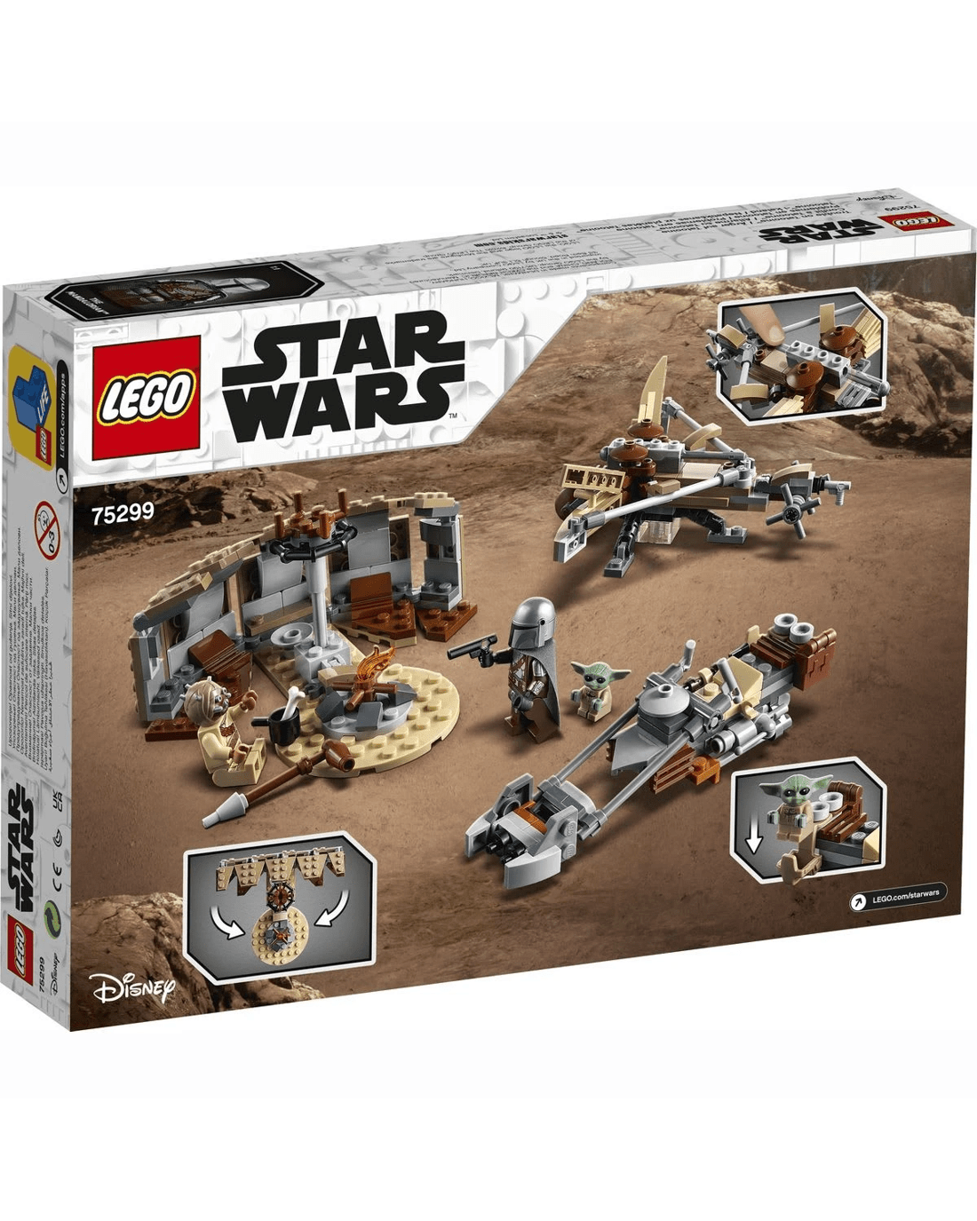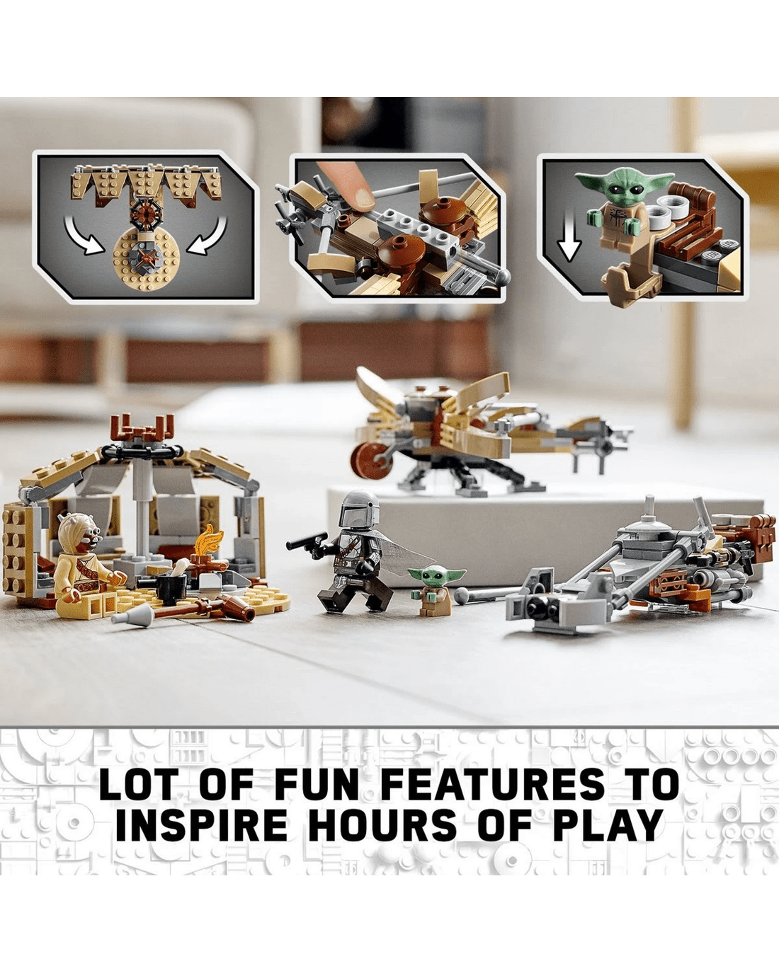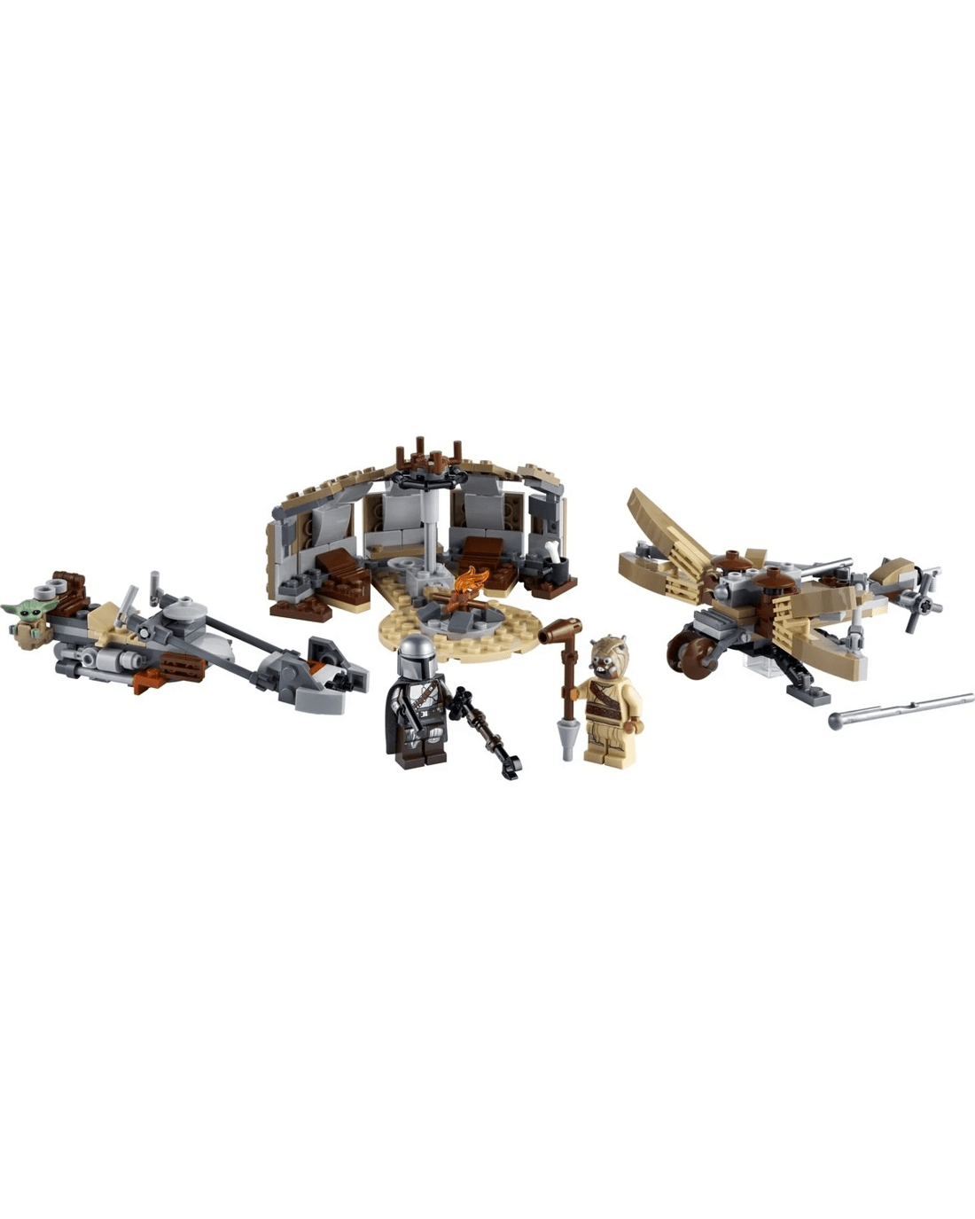 - The speeder has a LEGO minifigure seat and saddlebag for the Child to sit in. The set also features a buildable Tusken hut hideout and spring-loaded, missile-shooting ballista for the Tusken Raider.