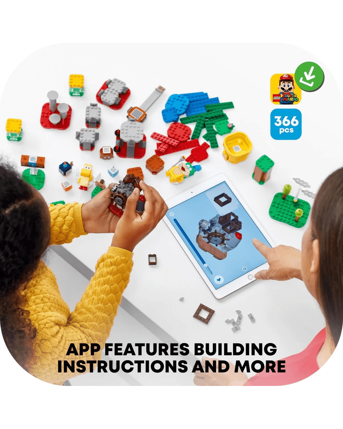 - The free LEGO Super Mario app features building instructions, inspiration for creative ways to build and play and more. For a list of compatible Android and iOS devices, visit LEGO.com/devicecheck.