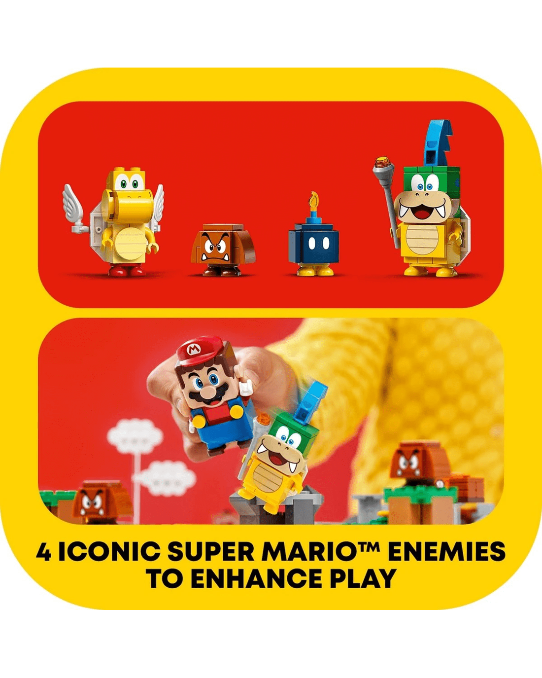 - Includes LEGO toy figures of 4 iconic Super Mario enemy characters - Larry and a Goomba, Bob-omb and Koopa Paratroopa - to add to the play experience.