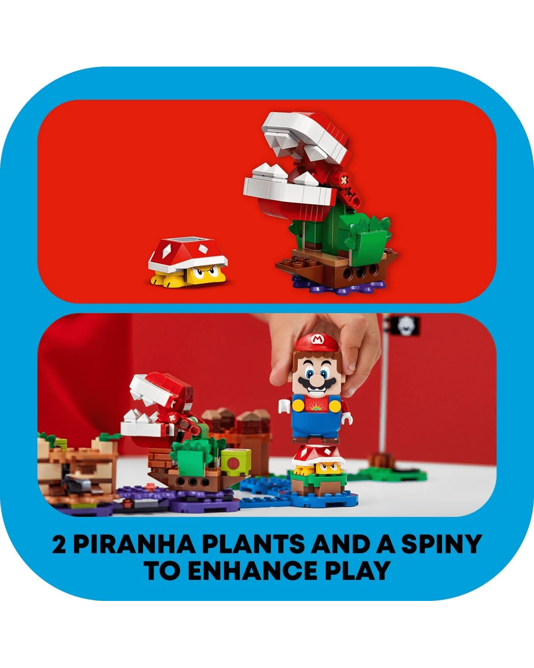- Kids can create spinning, jumping challenges in a brick-built, poisonous Soda Jungle to add to their LEGO Super Mario Starter Course with this Piranha Plant Puzzling Challenge Expansion Set.