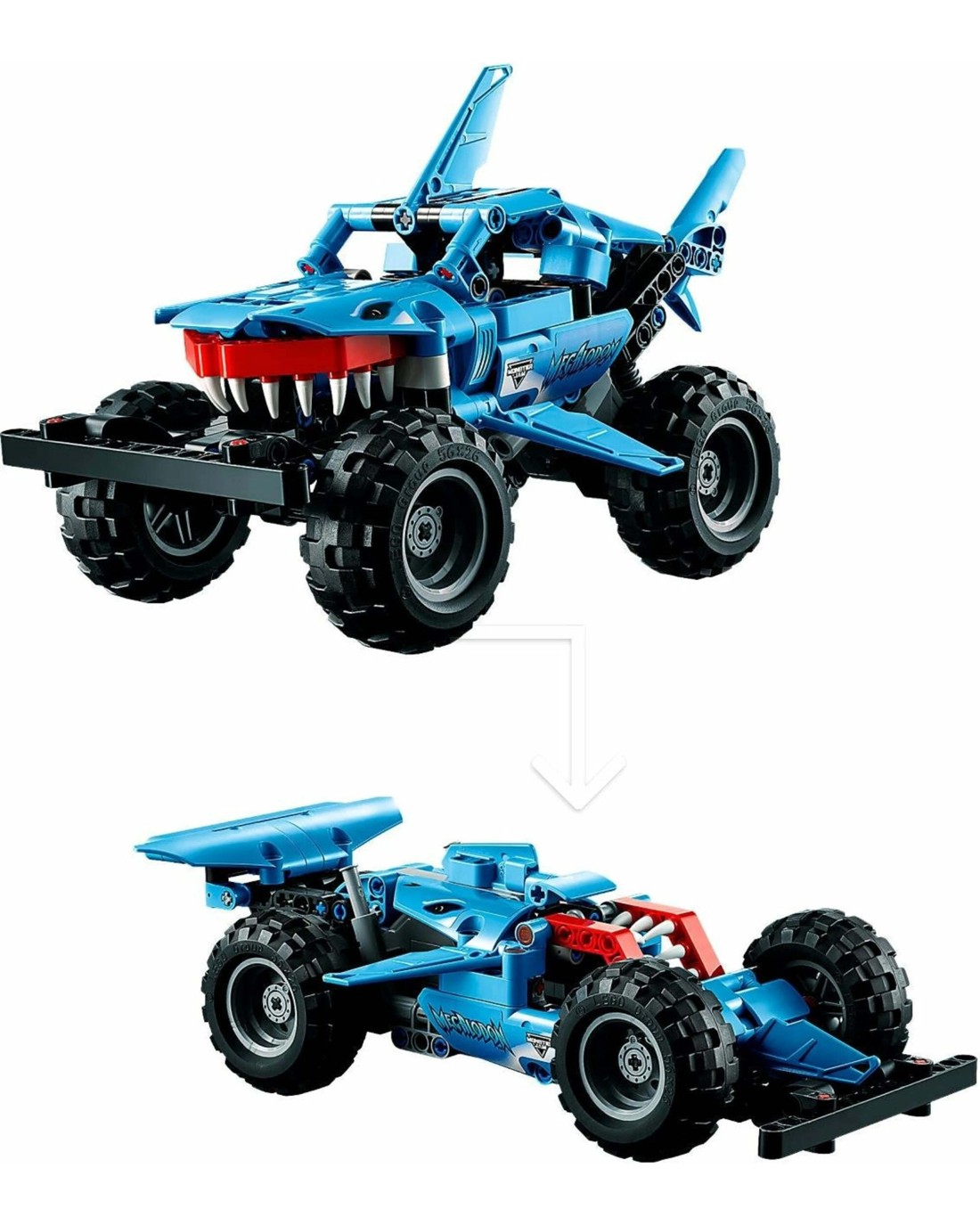 Authentic details: Just like the real-life Monster JamTM MegalodonTM, this LEGO(R) TechnicTM toy version features the distinctive shark teeth, plus fins that move as the vehicle powers along