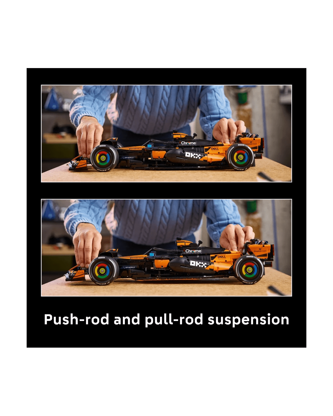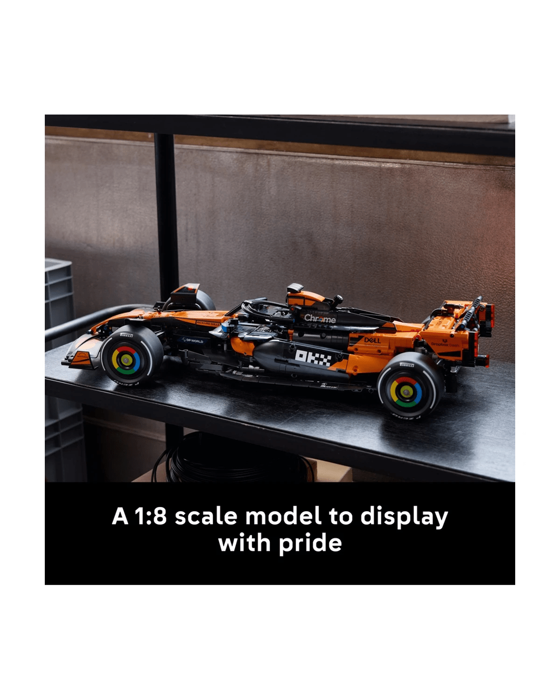 Assemble the details of the 2025 McLaren MCL39 F1 car as you build the steering, suspension, gearbox and differential. Activate the DRS, then remove the engine cover to examine the V6 engine. Enjoy your victory lap as you proudly display the model in pole position as a tribute to your passion for F1.