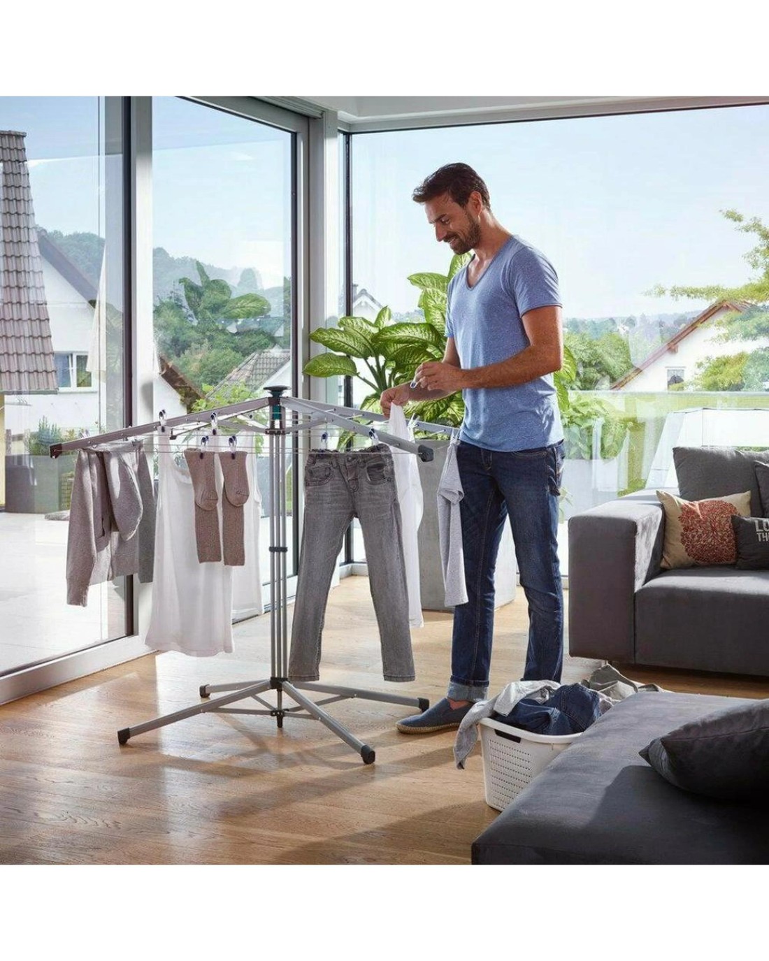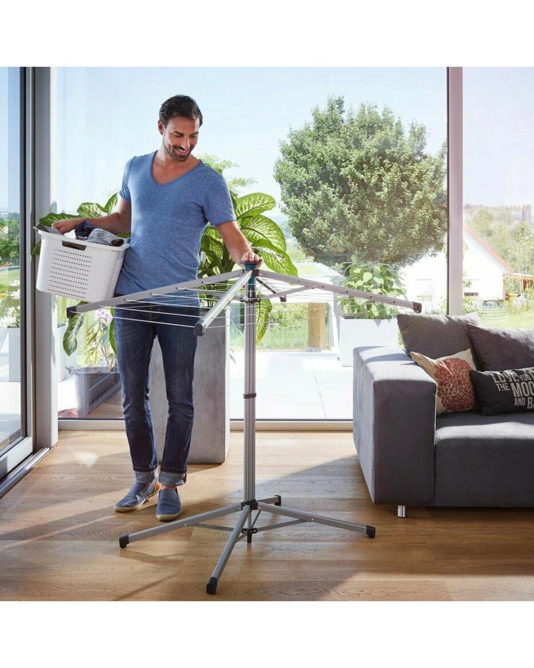 The Leifheit LinoPop-Up 140 Umbrella Stand Dryer with 14 Meter Standing Space is constructed from high quality materials. It features convenient one-handed operation for quick and easy opening and closing. This compact and lightweight dryer is ideal for use at home, as well as when caravanning and camping. The robust rotary arms and wide base ensure a secure footing. The tiered lines make hanging up laundry simple. When folded up, the standing rotary dryer can be stowed away to save space, as it has a width of only 120mm.
