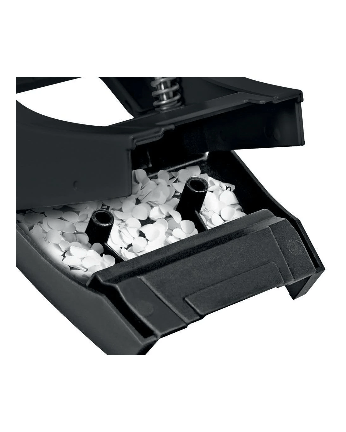 This eye-catching, premium Leitz Hole Punch has a 30 sheet capacity for easy everyday use. It punches two round holes and has a confetti tray for easy cleanup.