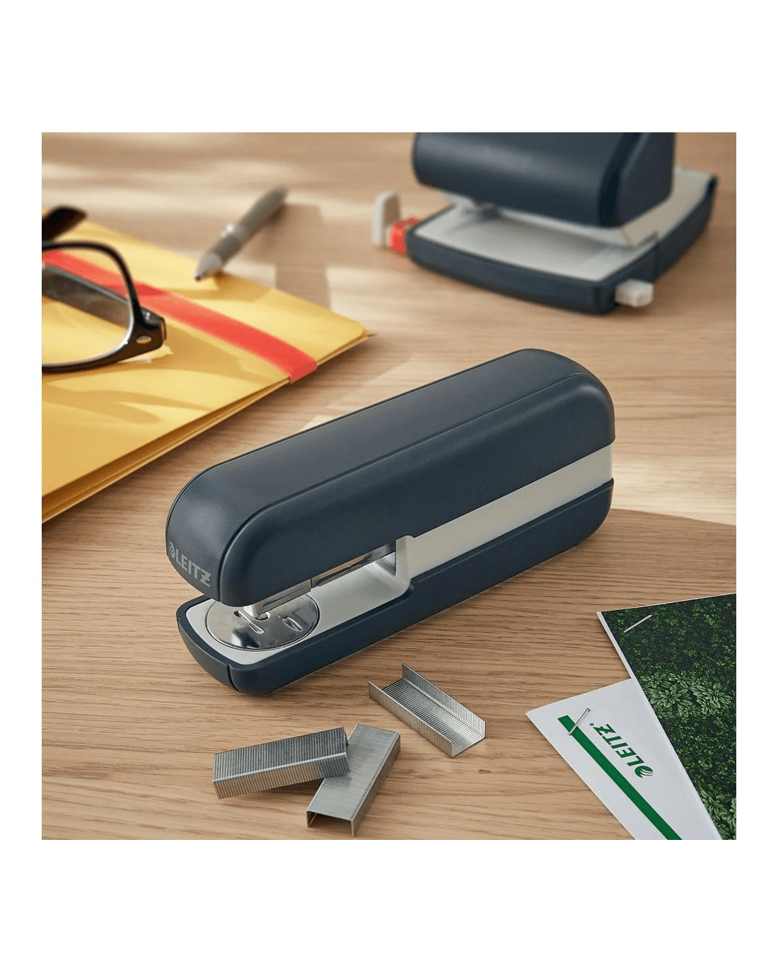 - This stapler comes in a Velvet Grey colourway.