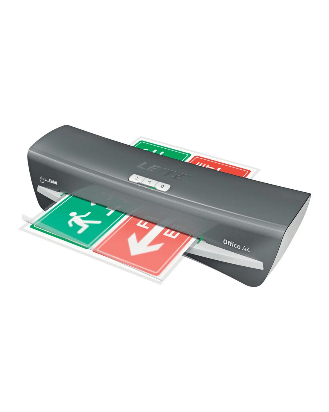 The Leitz iLAM Office A4 laminating machine ensures quick and easy document protection and effortless lamination. It features a fast 1-minute warm up time and the ability to laminate an 80-micron A4 sheet in just 36 seconds. Plus, the SMART status LED glows red during warm-up and turns green with an acoustic signal when the laminator is ready to use.