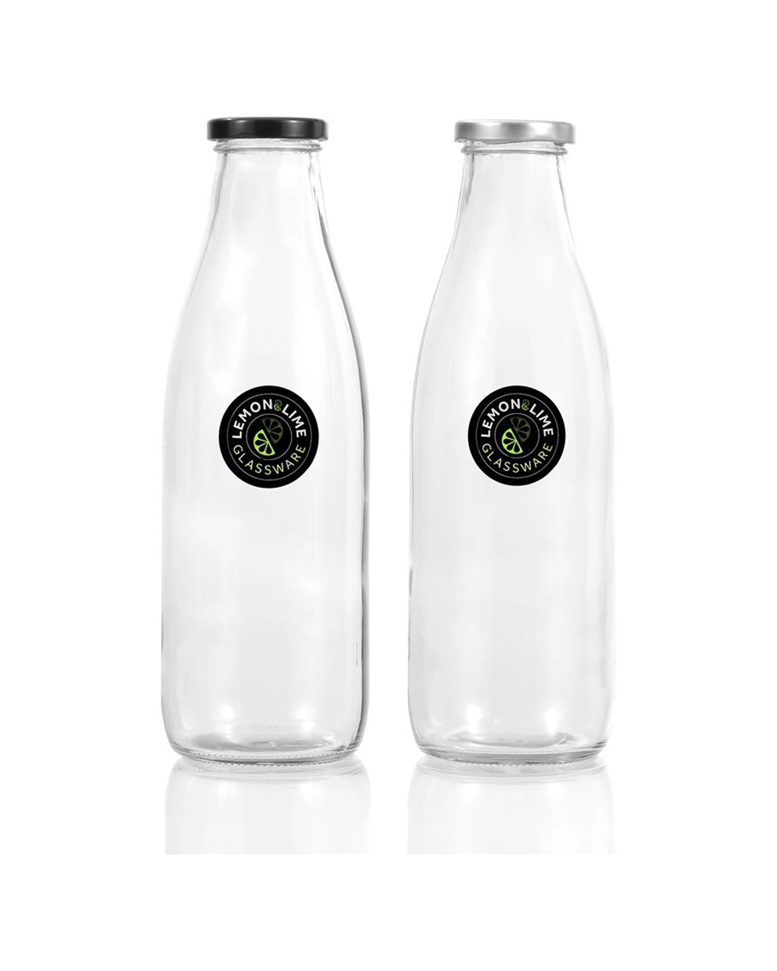 Lemon & Lime 1l Glass Milk Bottle Container Storage W/ Screw Top Lid - Assorted