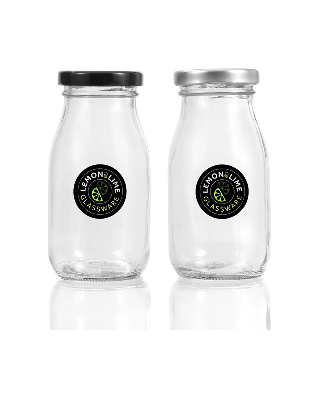 Lemon & Lime 200ml Glass Milk Bottle Container Storage W/ Screw Top Lid - Assorted