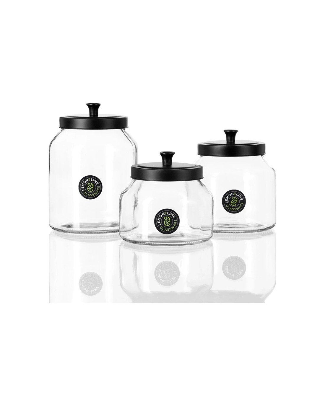 Lemon & Lime 2l 18cm Cosmo Glass Jar W/ Black Lid Food/kitchen Storage/display - Black