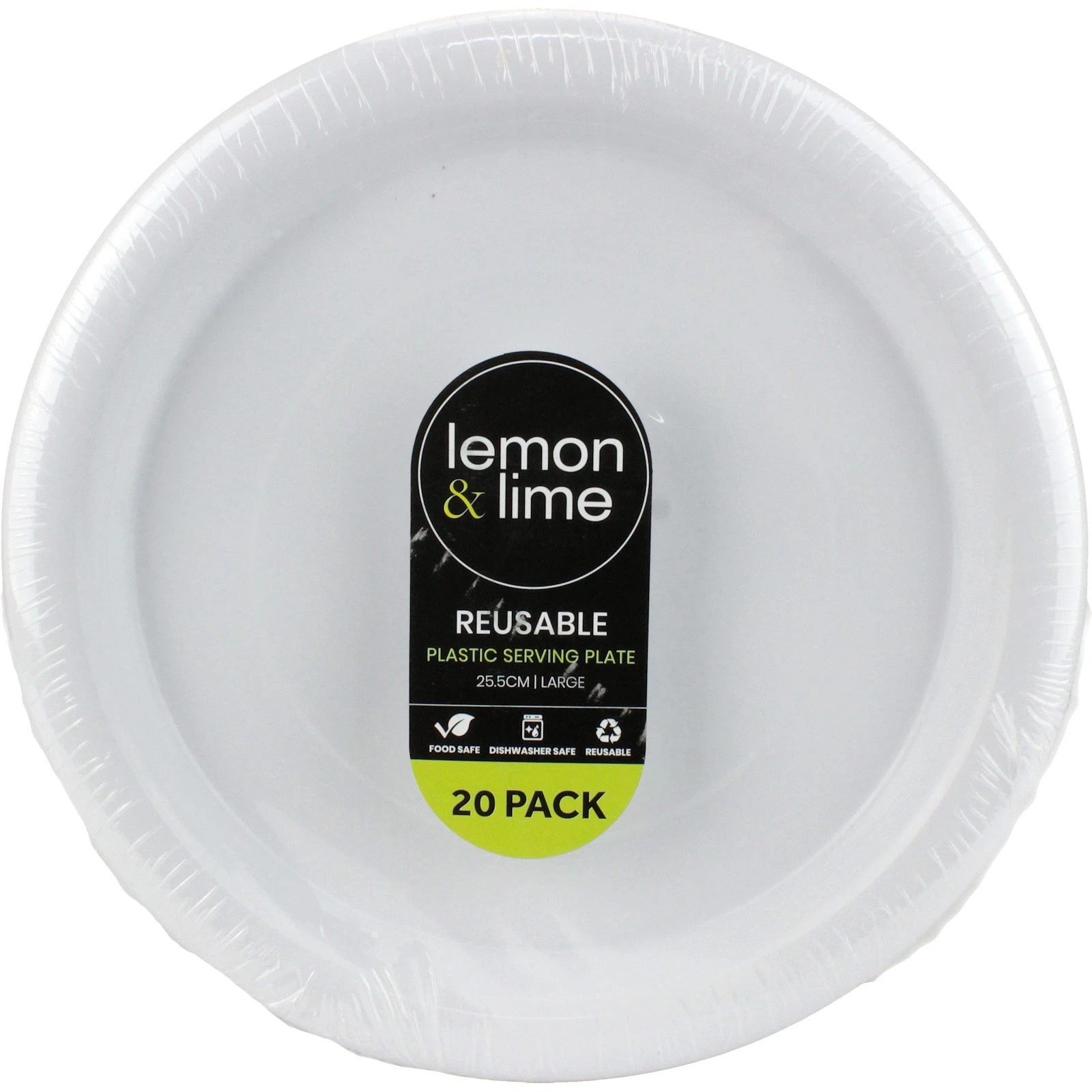 Lemon & Lime Lemon & Lime White Plastic Reusable Plates 25.5cm Pack of 20