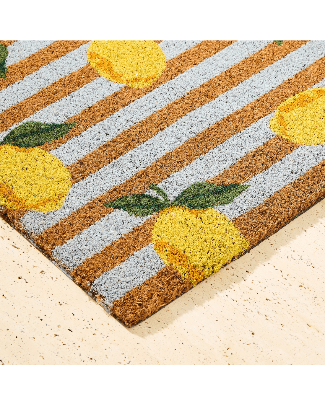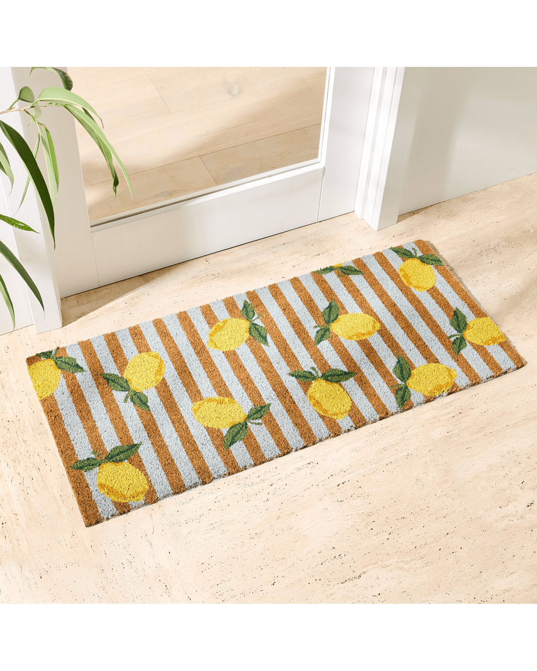 Brighten your entryway with the Lemon Stripe Door Mat, designed to add a fresh and cheerful touch to your doorstep. A practical way to help keep dirt outside while enhancing your home's first impression.