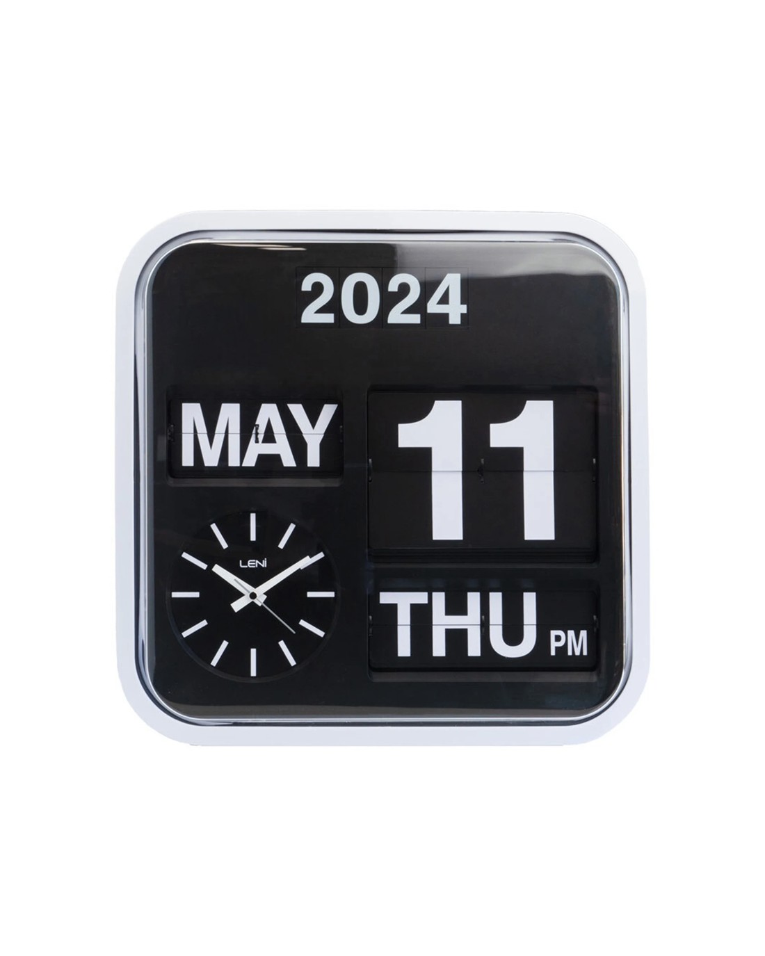 1 x LENI Bankers Wall Clock With Calendar 43x43cm Black