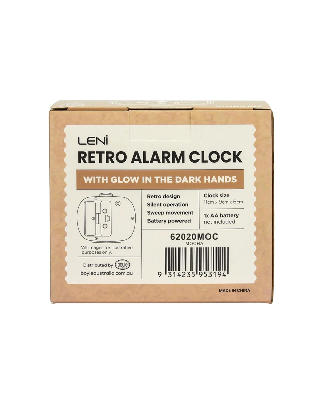 Leni Retro 9cm Alarm Clock Luminescent Hands Audible Beep-Beep Alarm - Brown