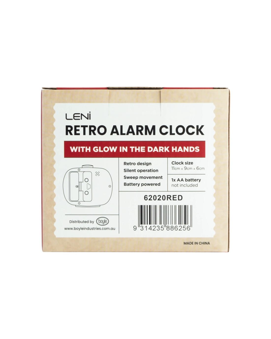 Leni Retro 9cm Alarm Clock Luminescent Hands Audible Beep-Beep Alarm - Red