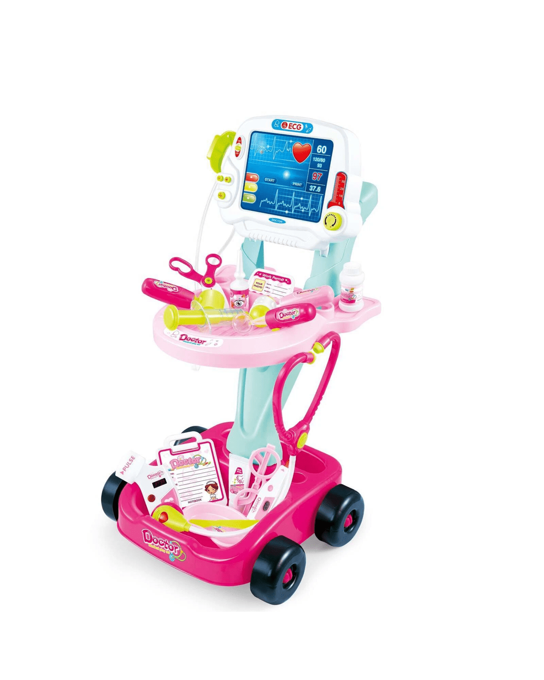 Lenoxx Medical Cart With Lights Sounds 17 Accessories Portable Kids Toy 58cm - Pink