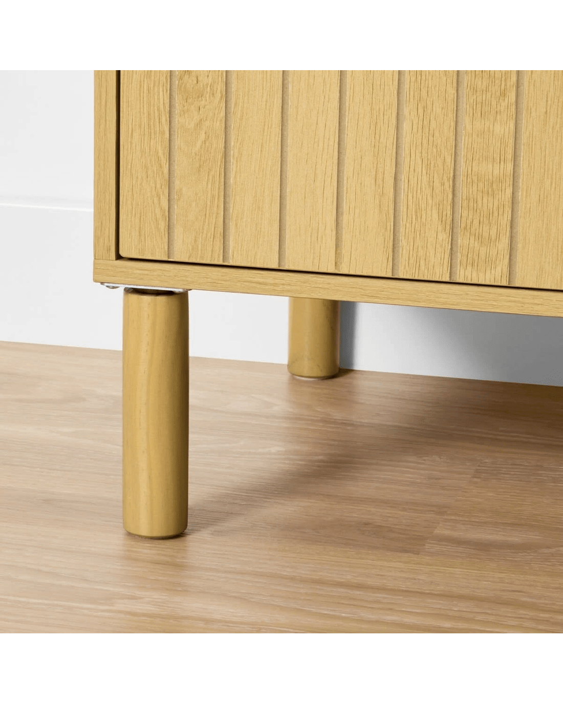 Ribbed Front Detail: The cabinet fronts feature a ribbed design that adds subtle texture and a modern touch to the overall look.
