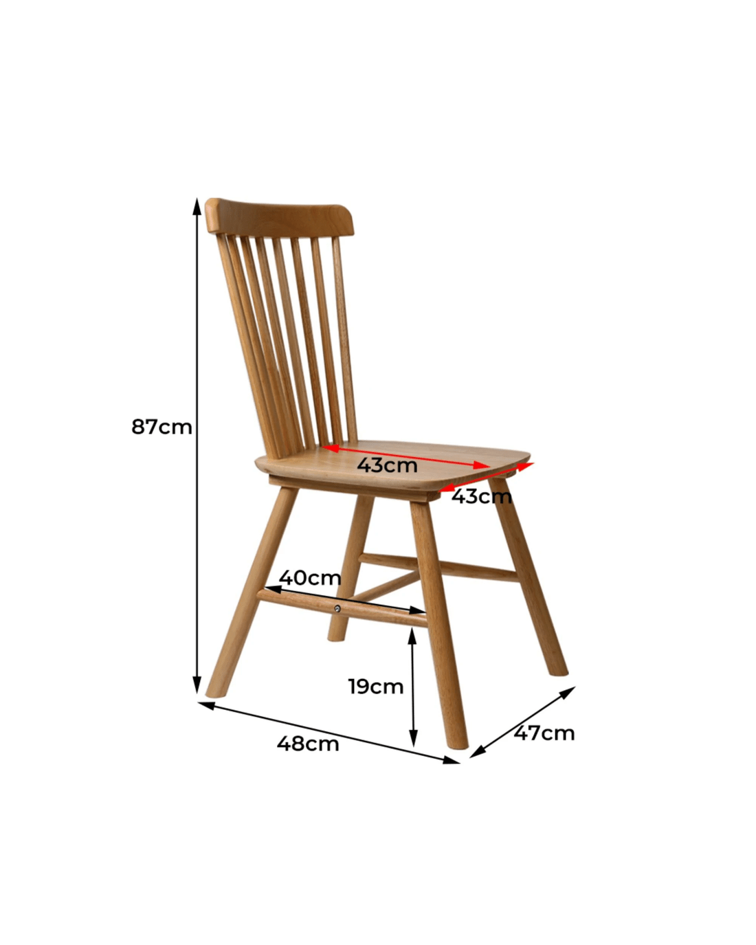 Expertly crafted from solid oak wood, these chairs provide exceptional durability and a 150kg weight capacity, making them a reliable choice for daily use. The iconic Windsor-style backrest delivers both ergonomic support and aesthetic charm, ensuring comfort while enhancing your space with a natural, warm finish.