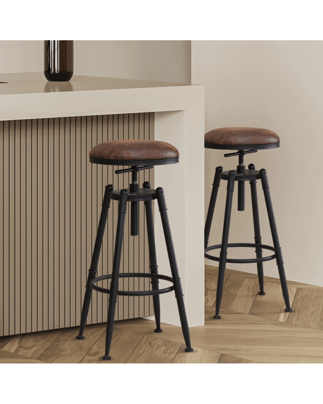 Featuring a stunning vintage look perfect for industrial design lovers, this designer furniture piece will bring the industrial revolution into your home. Retro-inspired, the stool has minimal style with a rustic height adjustment function where the seat is adjusted up and down by swivel. Impeccably constructed with heavy duty steel, be assured its made to the highest standard and will last for as long as you need. It's the perfect piece of designer furniture to create the ultimate industrial dining space.