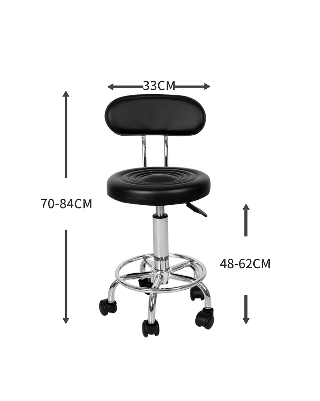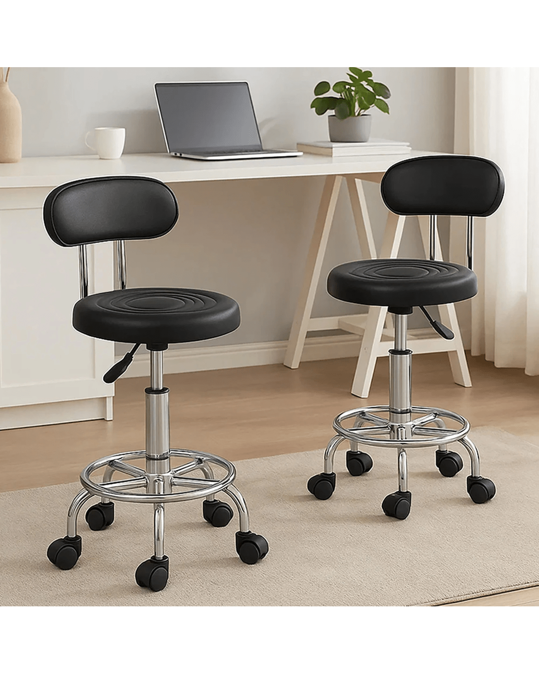 Levede Salon Stool is designed to bring versatility and mobility to your workspace. Whether you’re using it as a salon stool or part of a set of bar stools with back, it adapts effortlessly. Featuring a PU leather seat with high density foam that offers maximum comfort, it blends well with black bar stools or as a modern single bar stool. For best performance in a variety of workplaces, it comes with 360o rotation, 5 smooth-rolling casters, and circular footrest—perfect for bar stools swivel use or even swivel bar stools with back setups.
