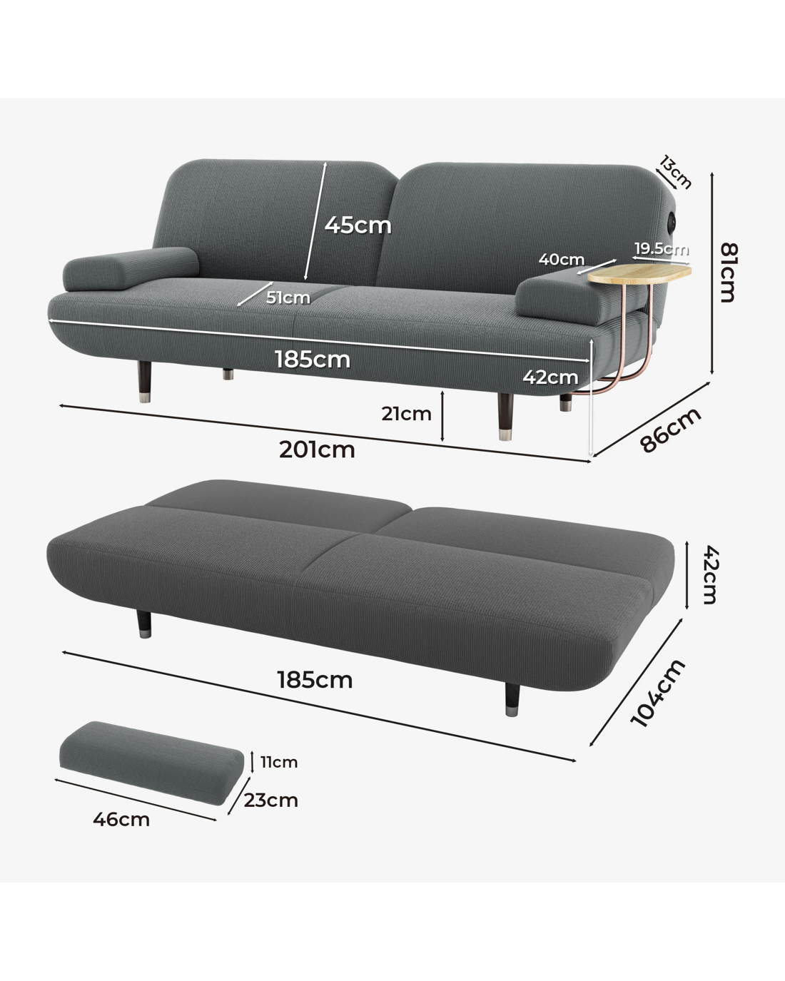 Moreover, this sofa bed comes with a charging function (AU plug), featuring one USB port and one TYPE C port. Keep your devices powered up and within reach.