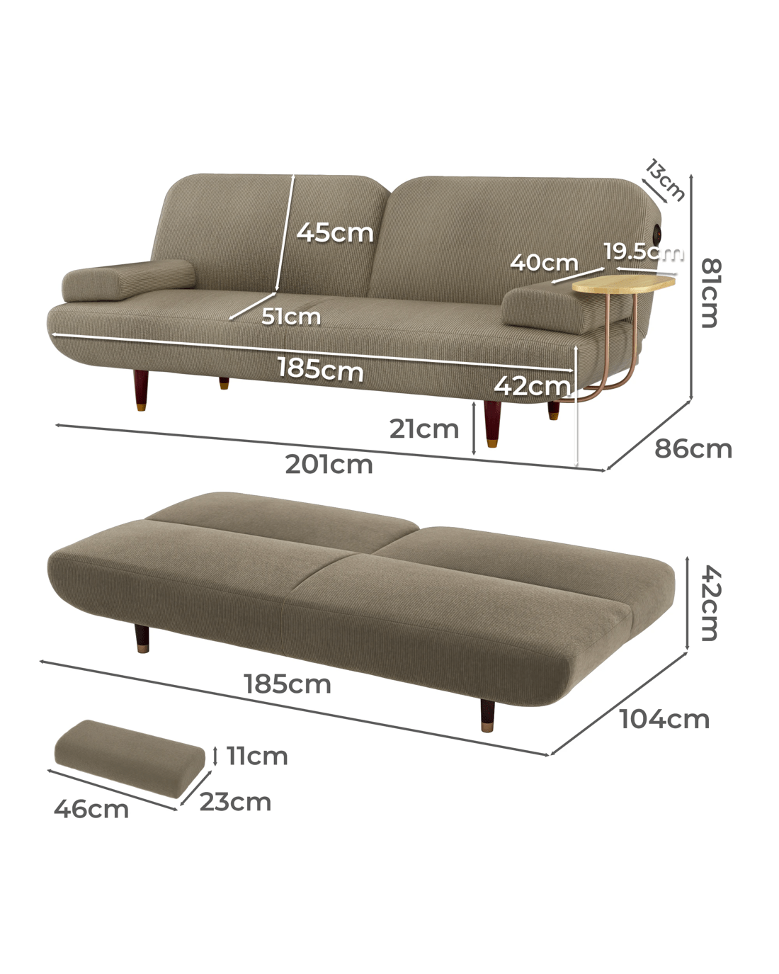 Moreover, this sofa bed comes with a charging function (AU plug), featuring one USB port and one TYPE C port. Keep your devices powered up and within reach.