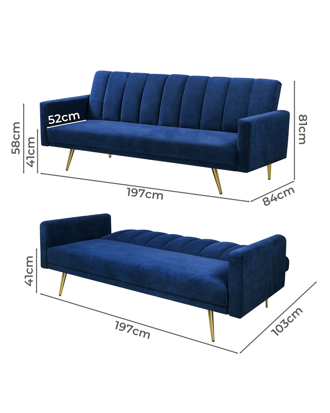 Sold by Sello ProductsLevede 3 Seater Velvet Sofa Bed Blue