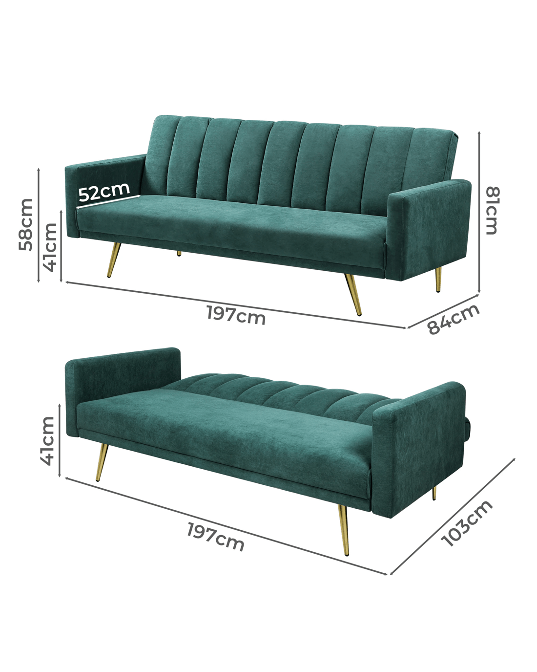 • Sofa: 197cm x 84cm x 81cm (W x D x H)