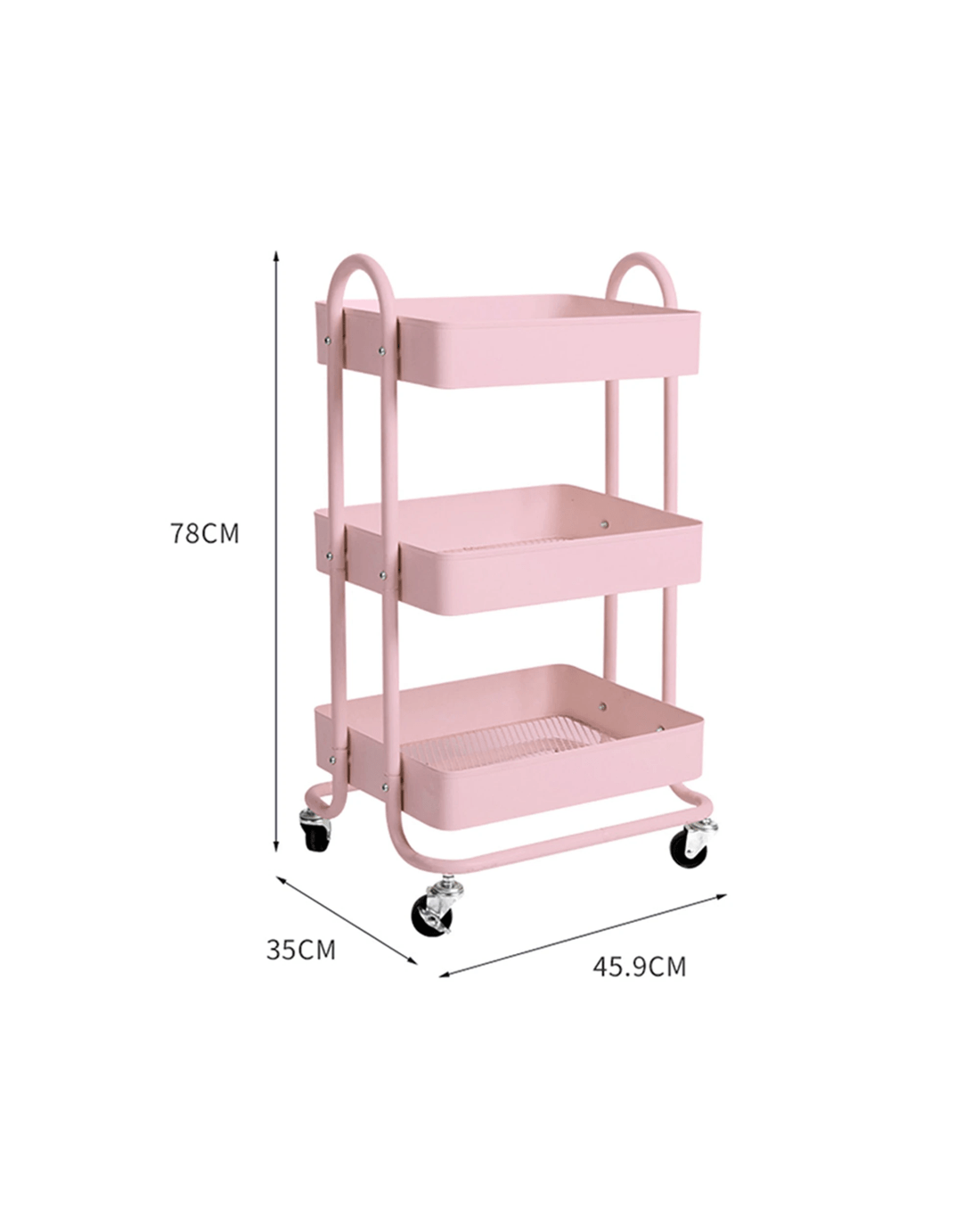 Sold by Sello ProductsLevede 3 Tiers Kitchen Trolley Cart Steel Storage Rack Shelf Organiser Pink