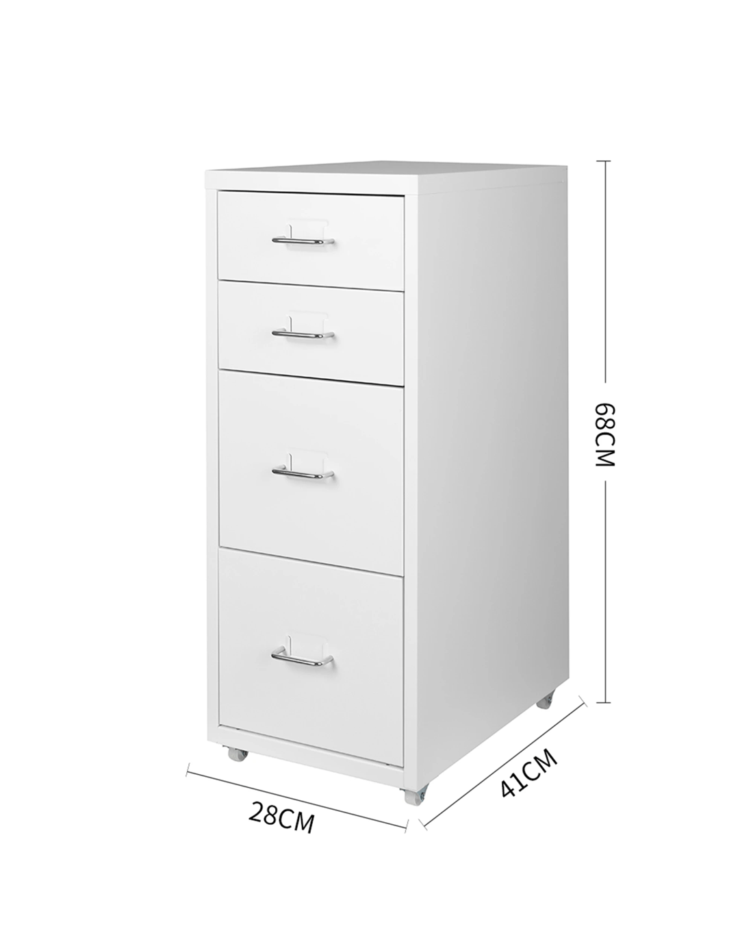 It is made of heavy-duty stainless steel. With steel construction, it is highly resistant towards water and rust, no more worry if you accidentally spill liquids such as water over it. Designed to be non-toxic and odourless for safer usage. It can easily fit in tight spaces with its compact size. Built-in wheels provide easy and convenient movability. Position it as the way you prefer; unlike traditional filing cabinets, it does not restrict you. Equipped with aluminium handles for accessible and smooth operation. Organize all your files in its spacious 5 tier capacity. All the files can be easily categorized with its unique label holder.